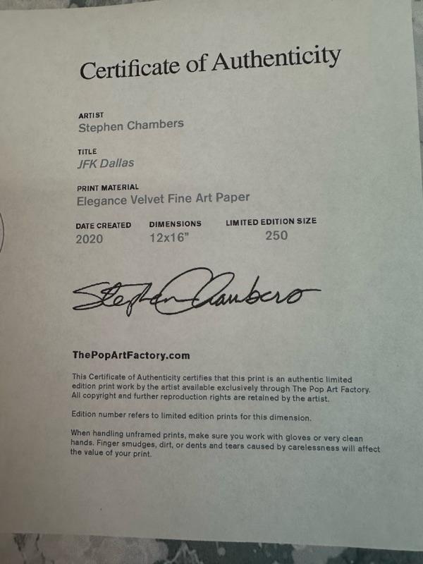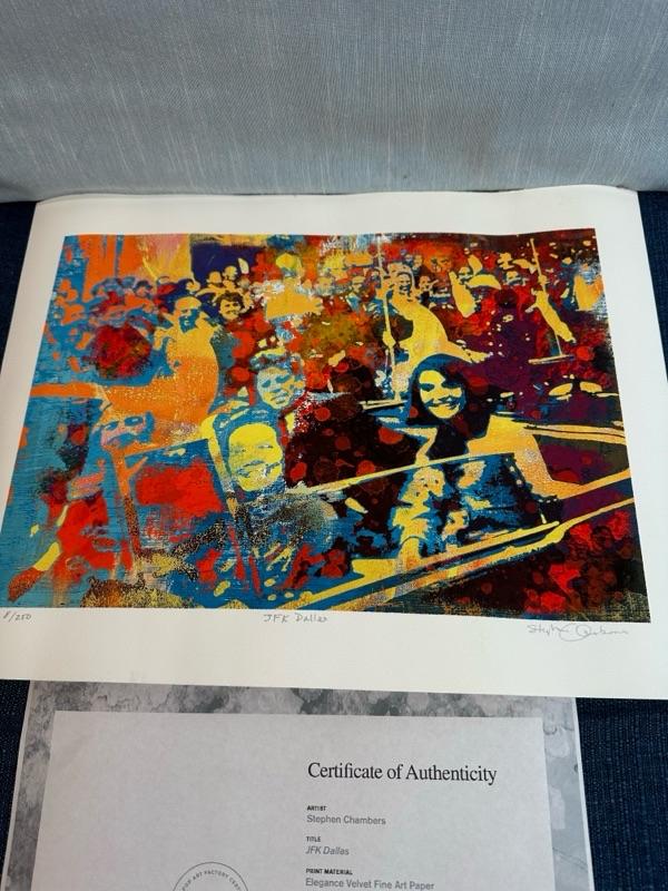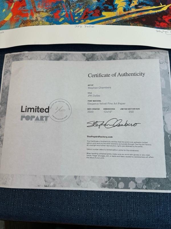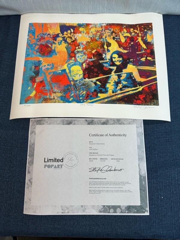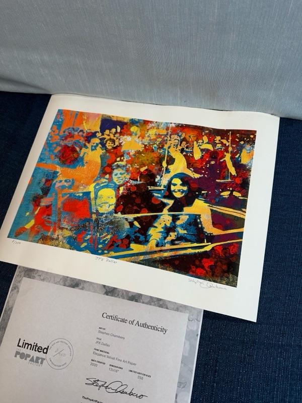 Lot 123 JFK Dallas Pop Art "JFK Dallas" Limited Edition Print 12x16 by Artist Stephen Chambers