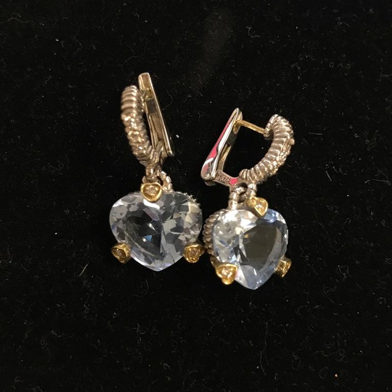 Lot 123- Judith Ripka 18K 925 Heart Earrings/Pendant