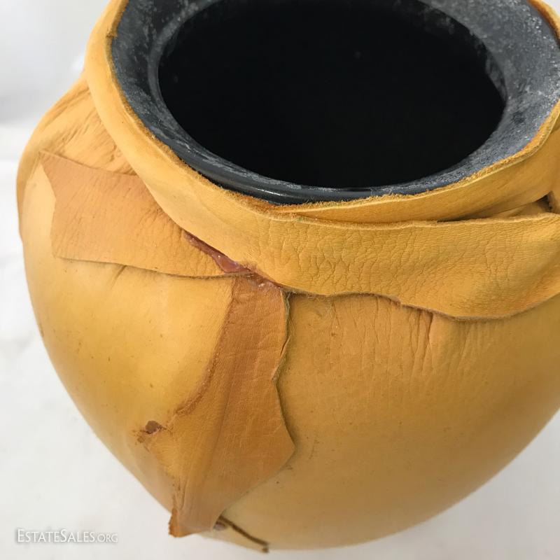 Lot 123 - Leather Pieces, Clay Pot and Artist Gourd