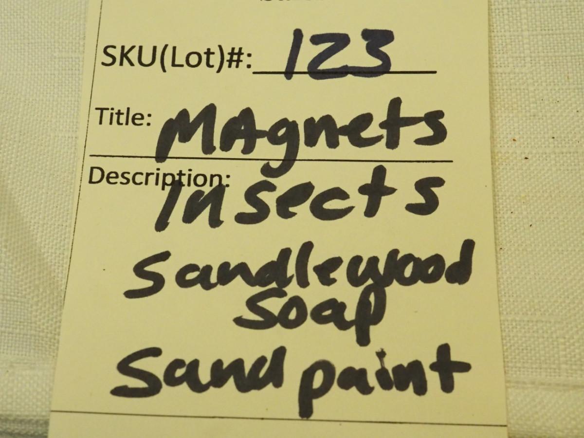 Lot 123- Lots of magnets, Sandlewood soap , mini office