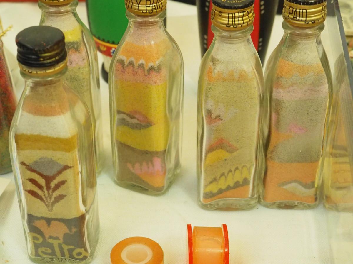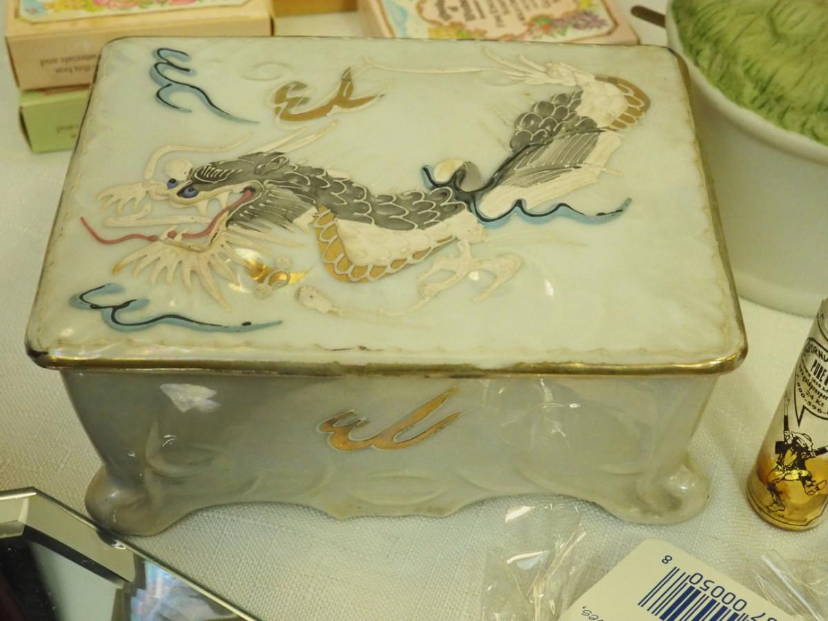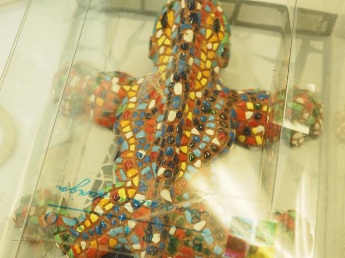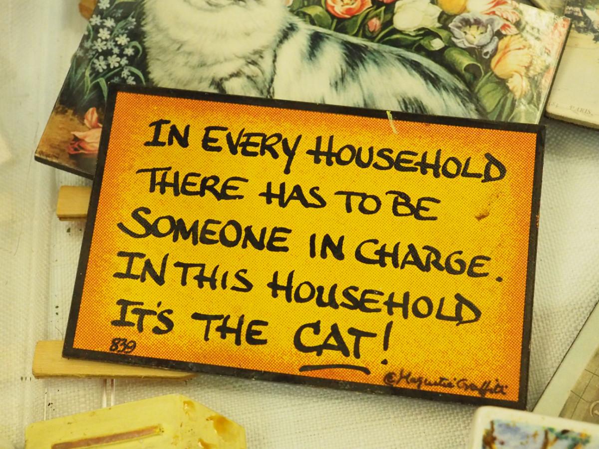 Lot 123- Lots of magnets, Many are cats and cat theme. Sandlewood soap , mini office Supplies, Gourd Owl, Mini sand paintings in bottles., Key rings with charms, Small bags Laurel Burch. beaded Lizard, Bagged plastic insects, Dragonware procelain ashtrays in Dragon box. Wood box with small round container, Dutch figurines wooden.