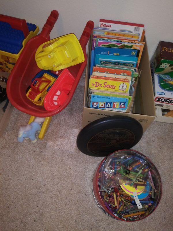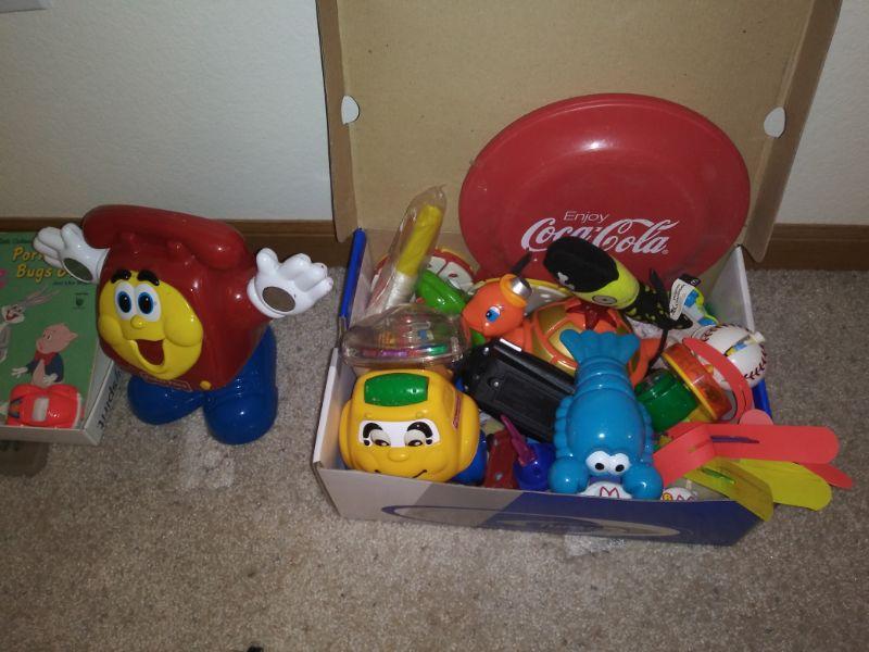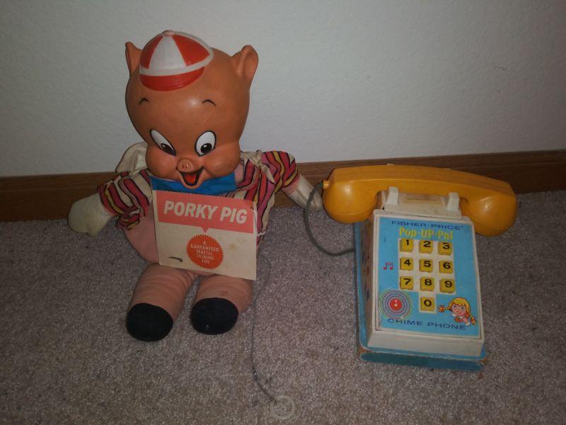 ENOUGH TOYS TO KEEP KIDS BUSY FOR AWHILE! THE PORKY PIG NO LONGER TALKS AND THE POP-UP PHONE DOESN'T CHIME BUT GIRL DOES POP UP WHEN PRESSING THE "0"