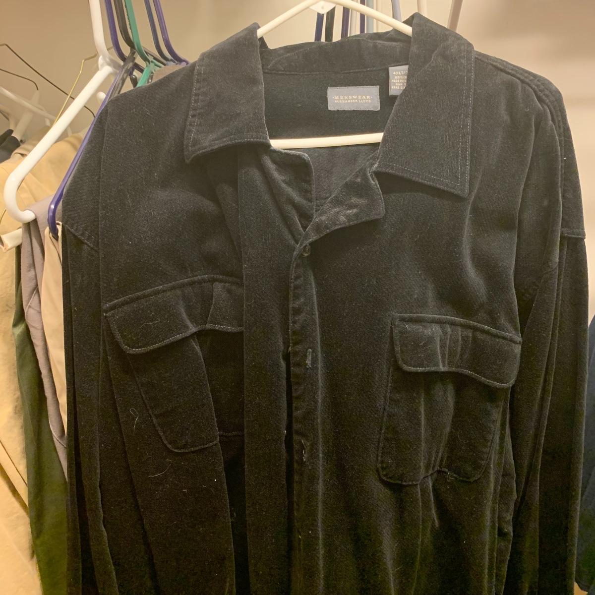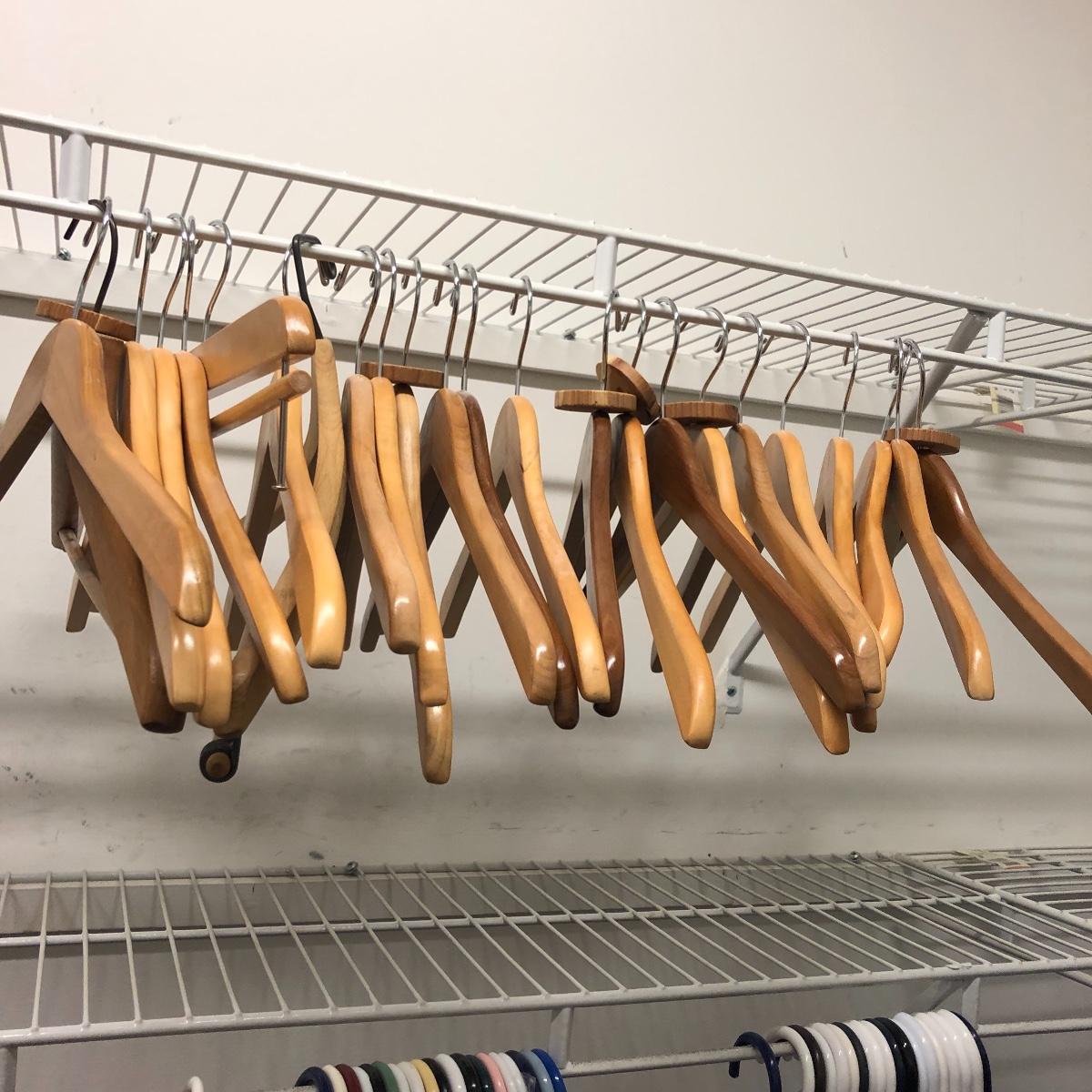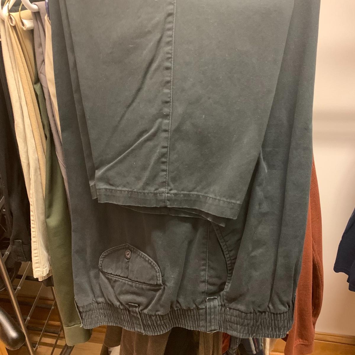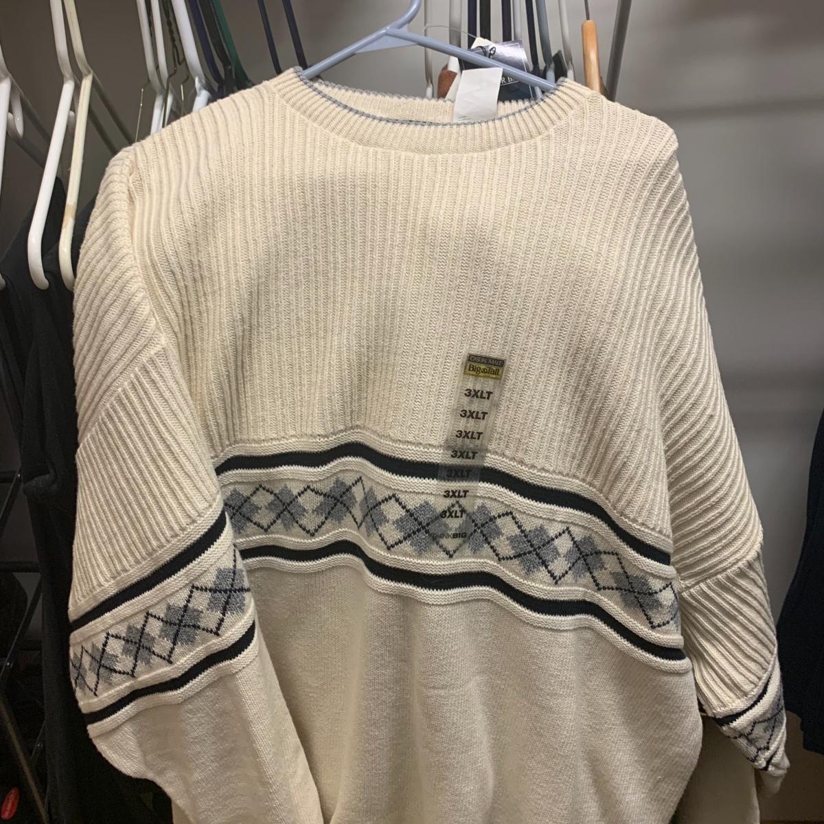 Add dressy casual clothes to your wardrobe. This lot includes several pairs of khaki pants, black jeans, and dress pants. There are twelve pairs in all. Also included are nine colored shirts, two beautiful sweaters, wooden hangers and a suede vest. All garments are in good condition and are size 4X. Local pickup only