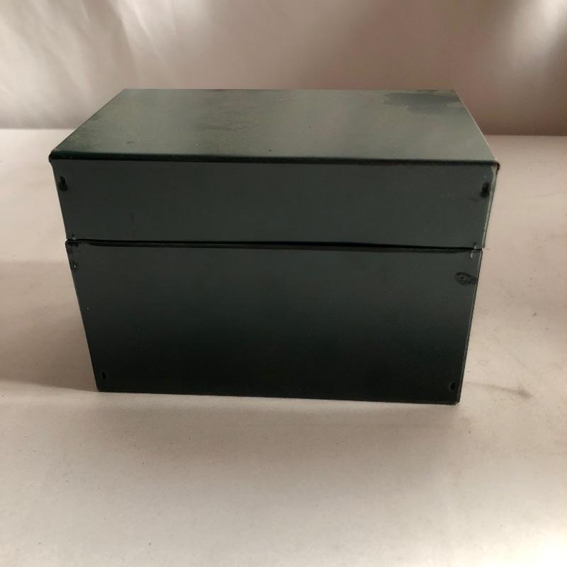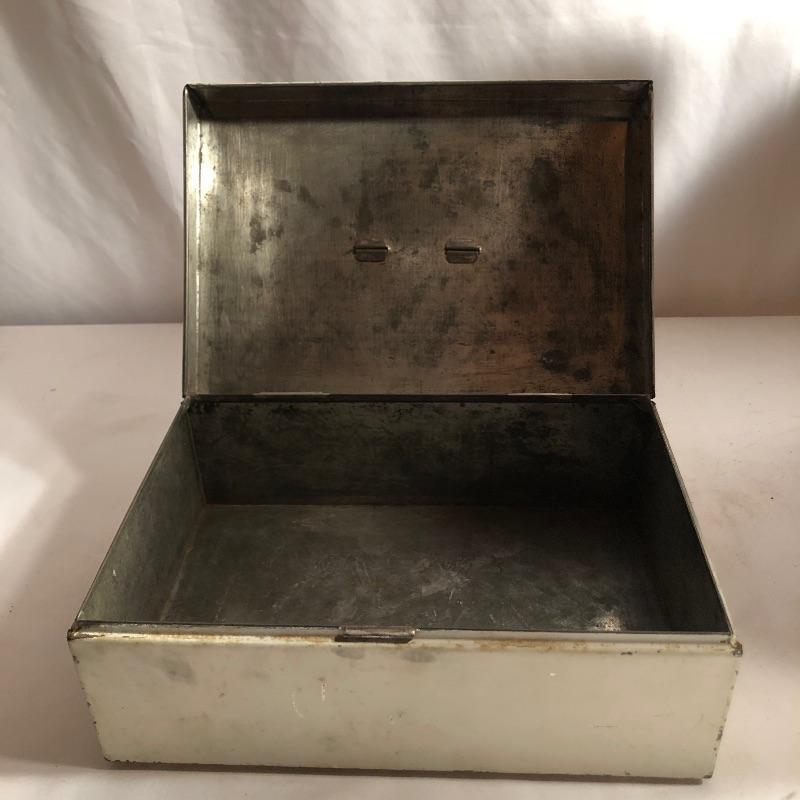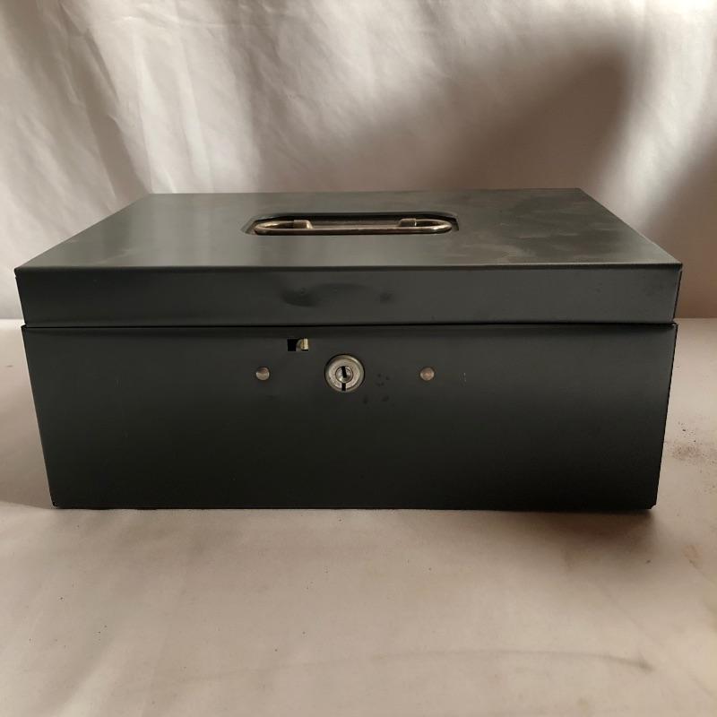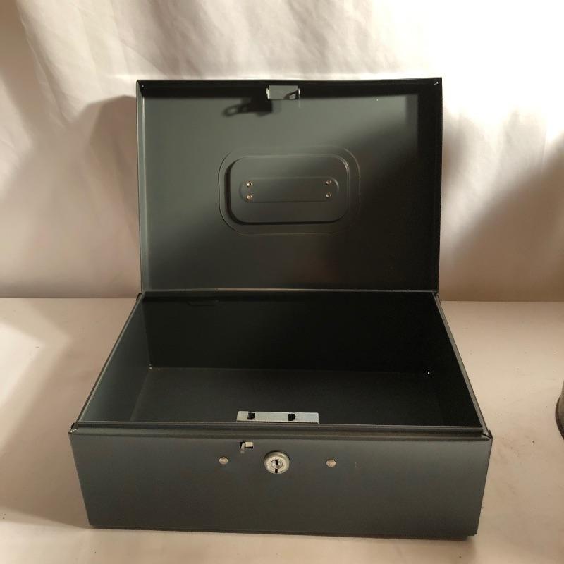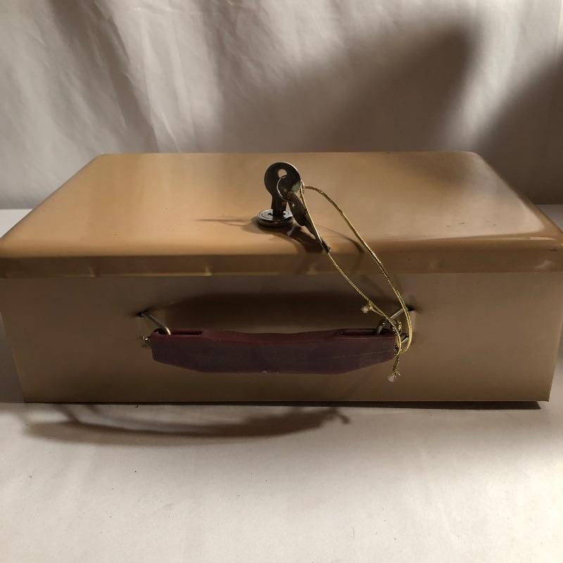 A total of five metal storage boxes here that are a mix of vintage and newer. Two of the five have keys and the largest box measures 9” x 12.5” x 10”. All boxes appear to be in good condition.