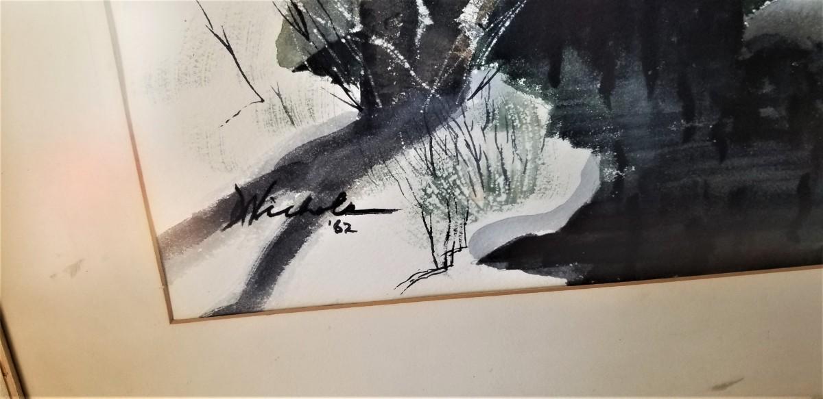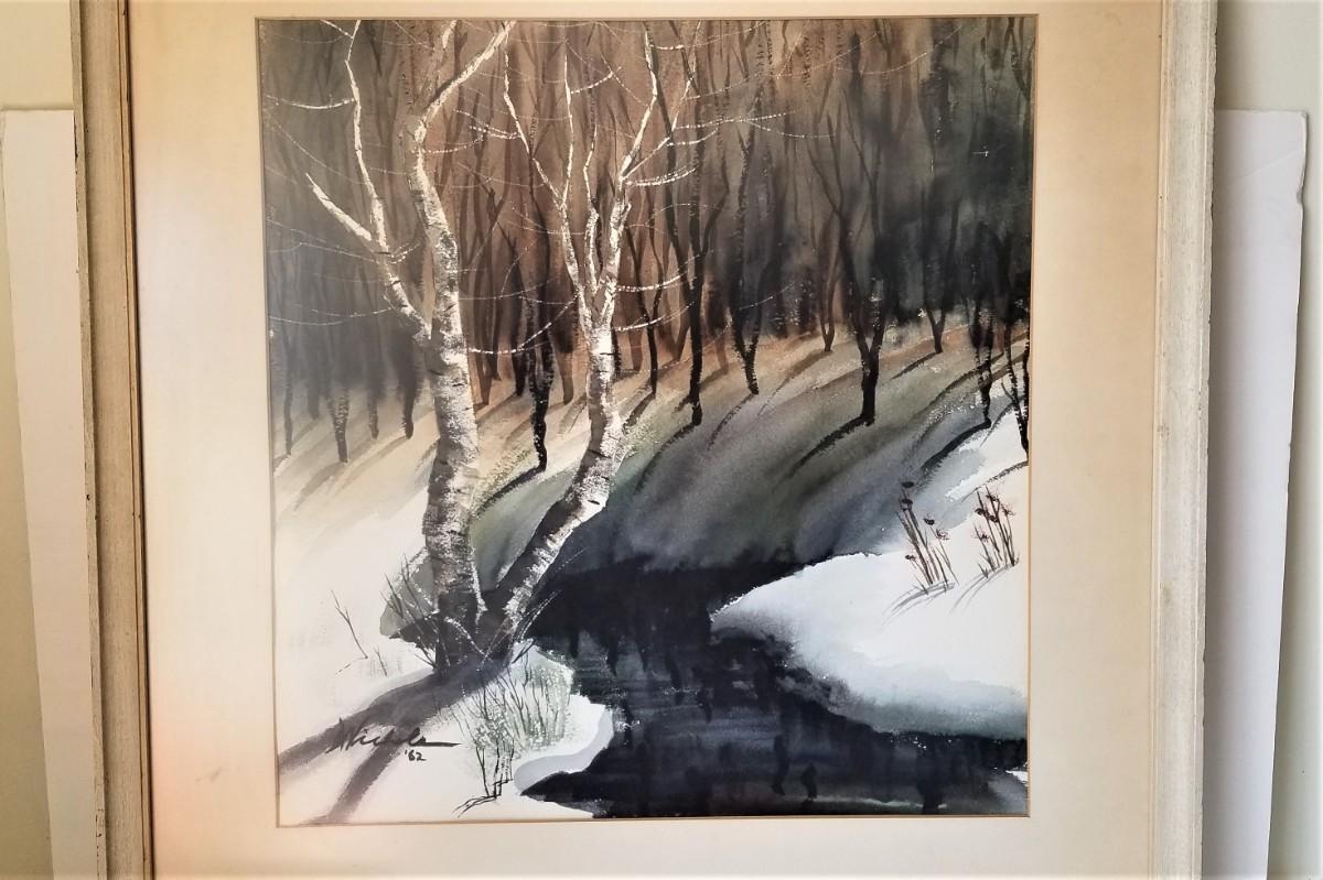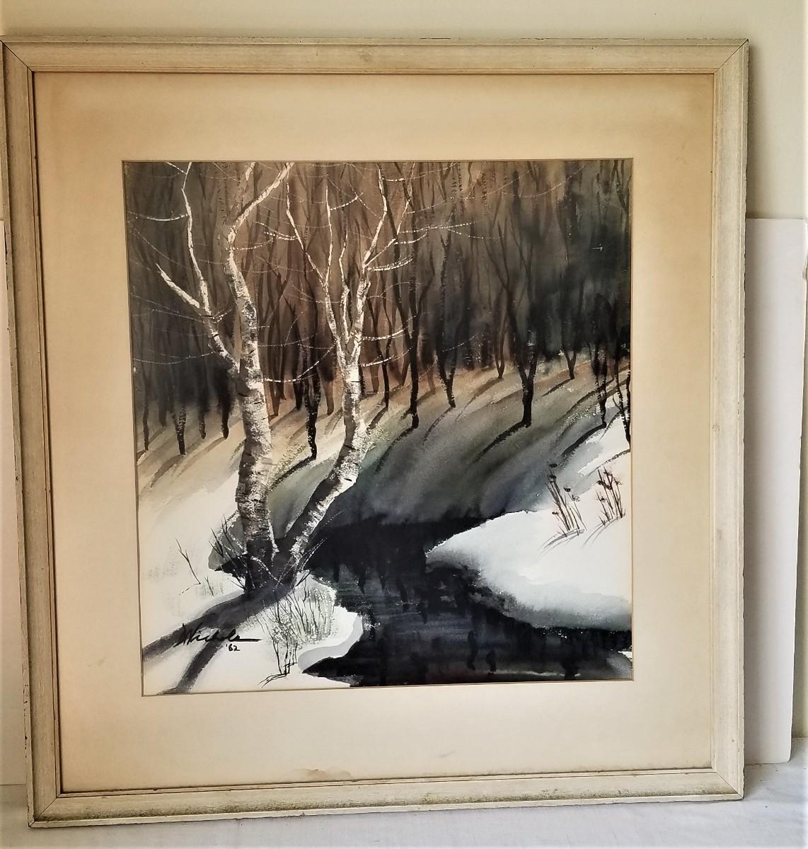 Lot #123  Original Watercolor - "Winter Woods" - MidCentury