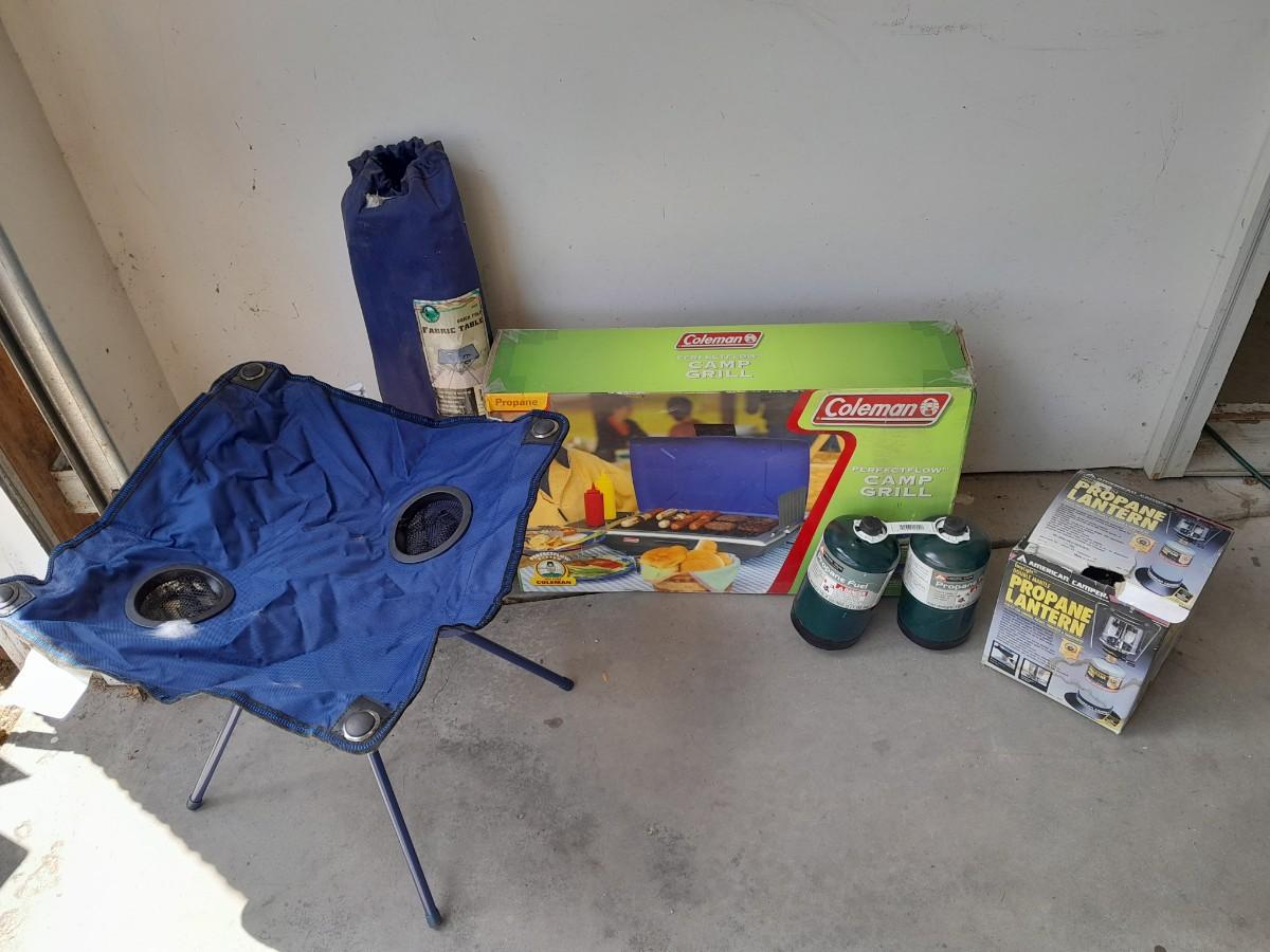 LOT 123 PROPANE LANTERN, COLEMAN GRILL AND MORE CAMPING (G)
