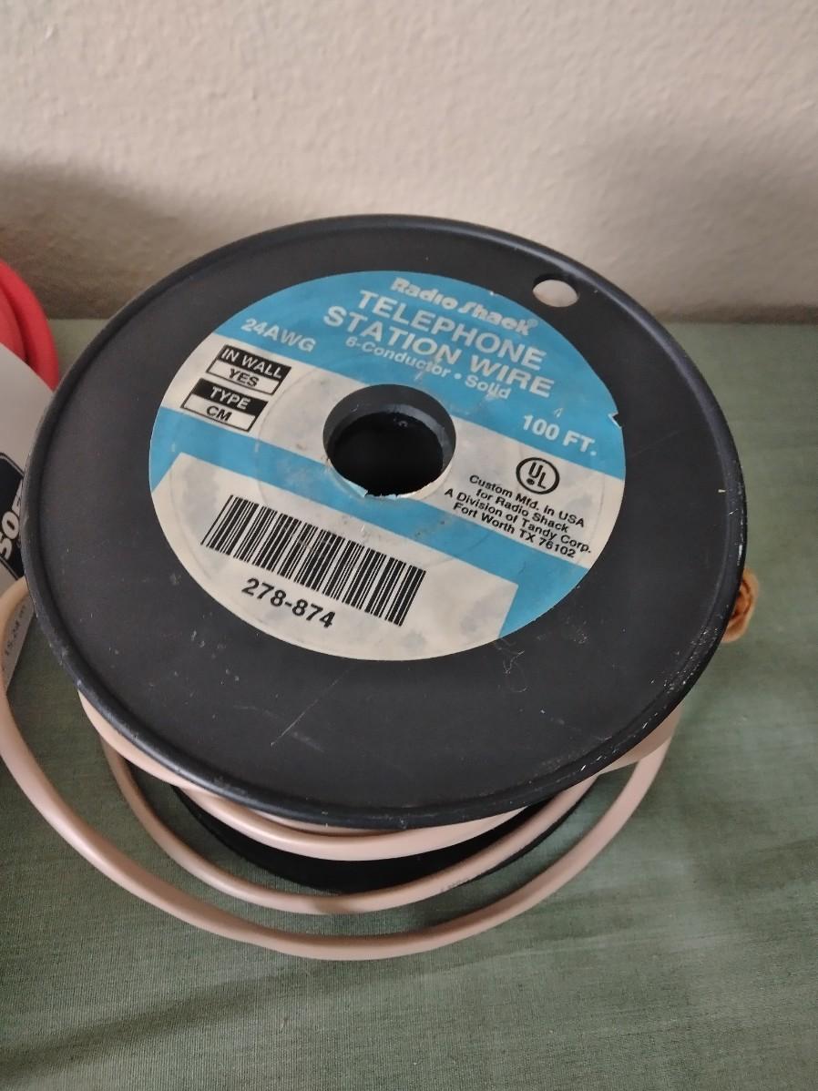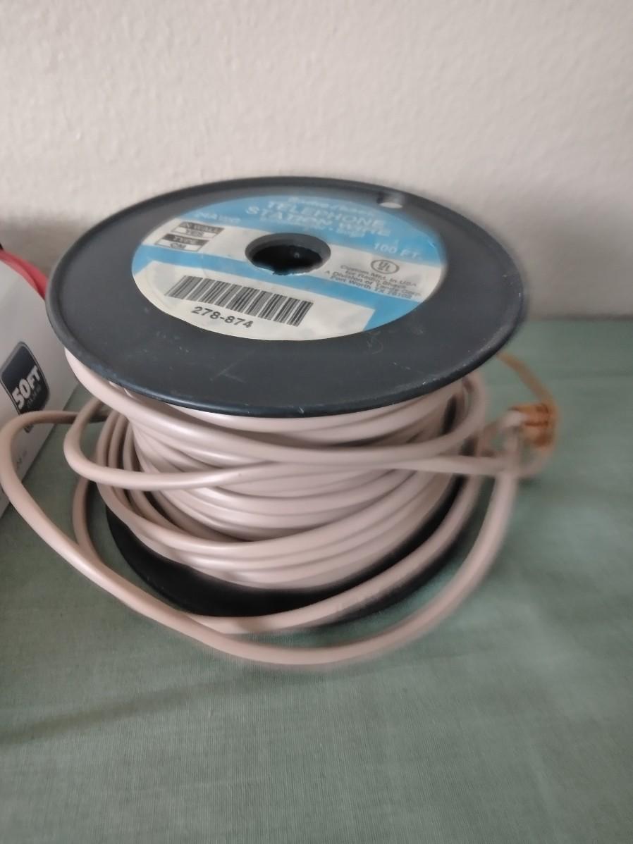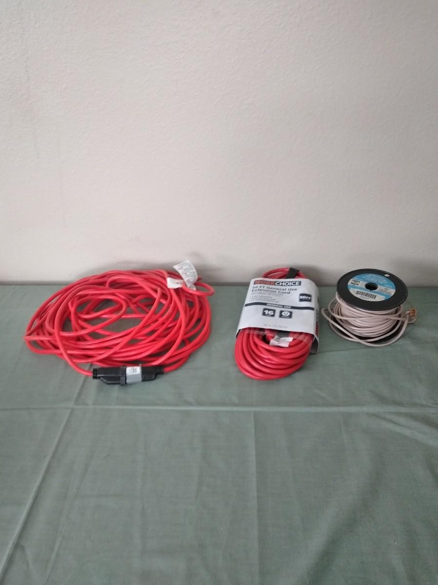 ROLL OF TELEPHONE WIRE, AND TWO EXTENSION CORDS.