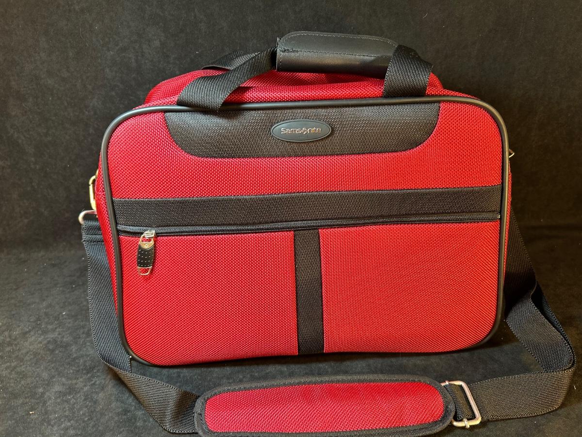 NEW 16” x 11” x 6 1/2” Samsonite red carry-on bag with shoulder strap