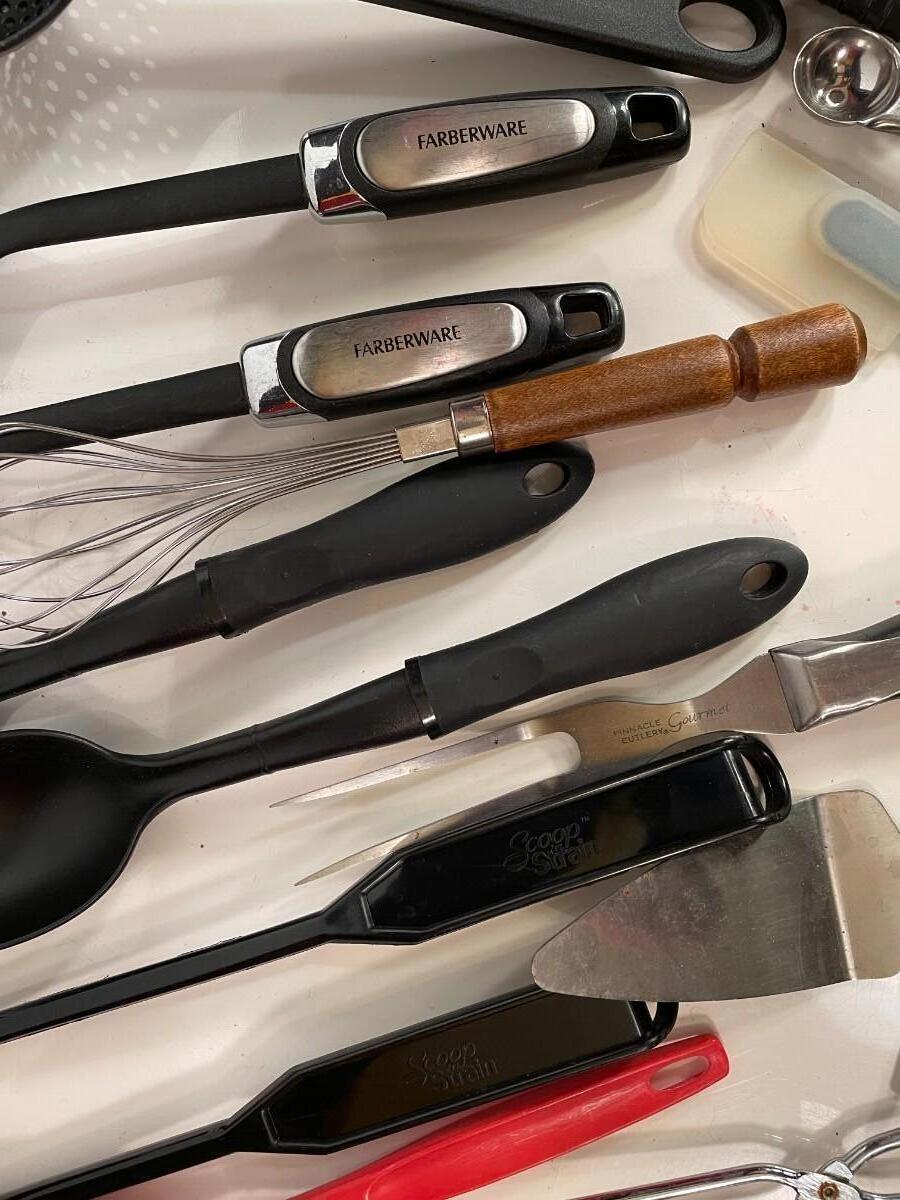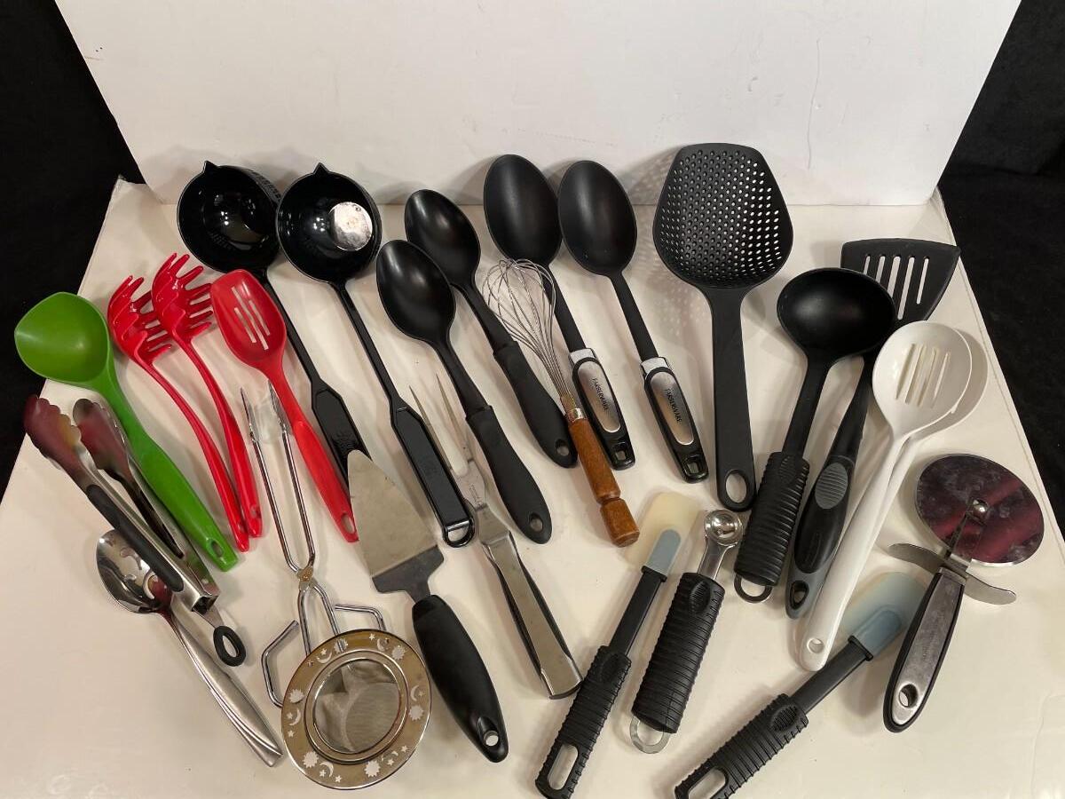 Lot 123 Serving Utensils and Miscellaneous Utensils (Farberware, Scoop & Strain included)
