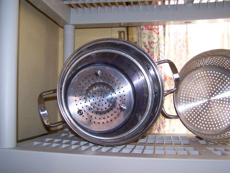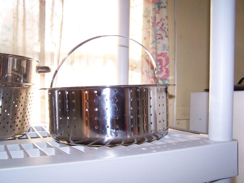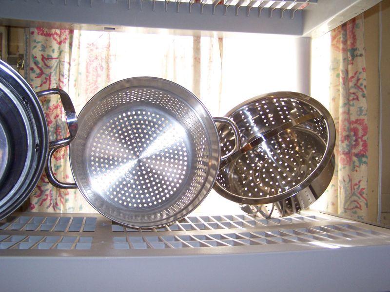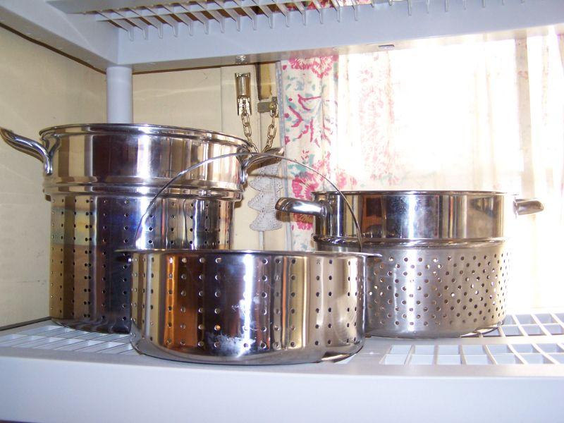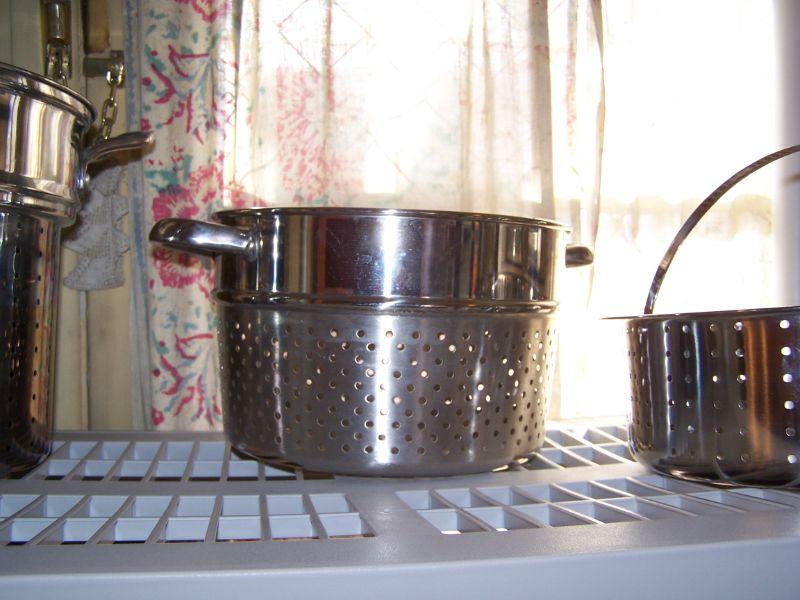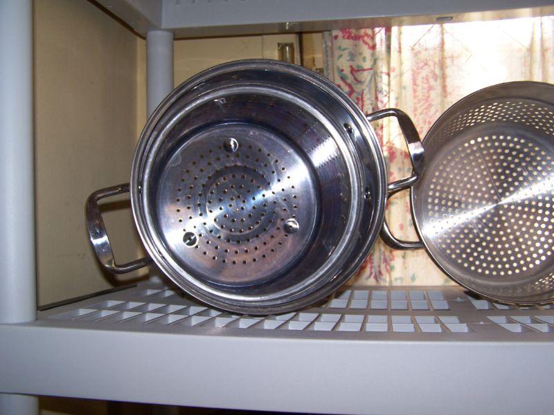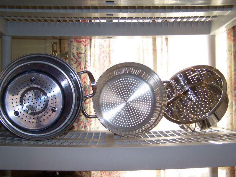 LOT 123 THREE STAINLESS STEEL COLANDER POTS