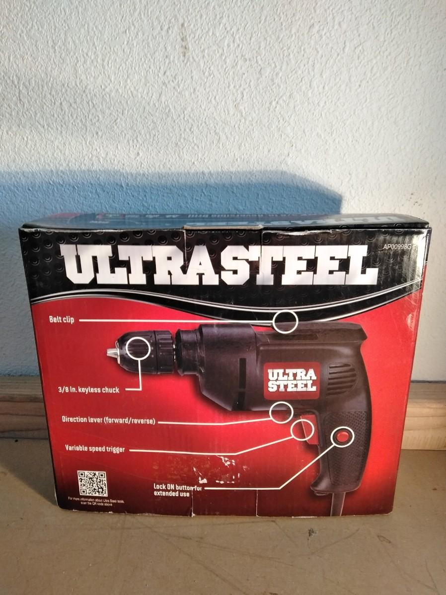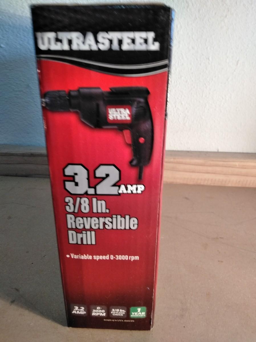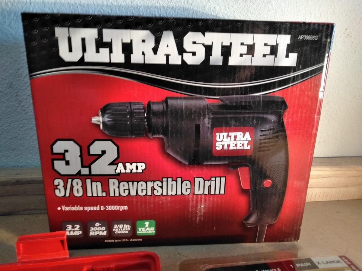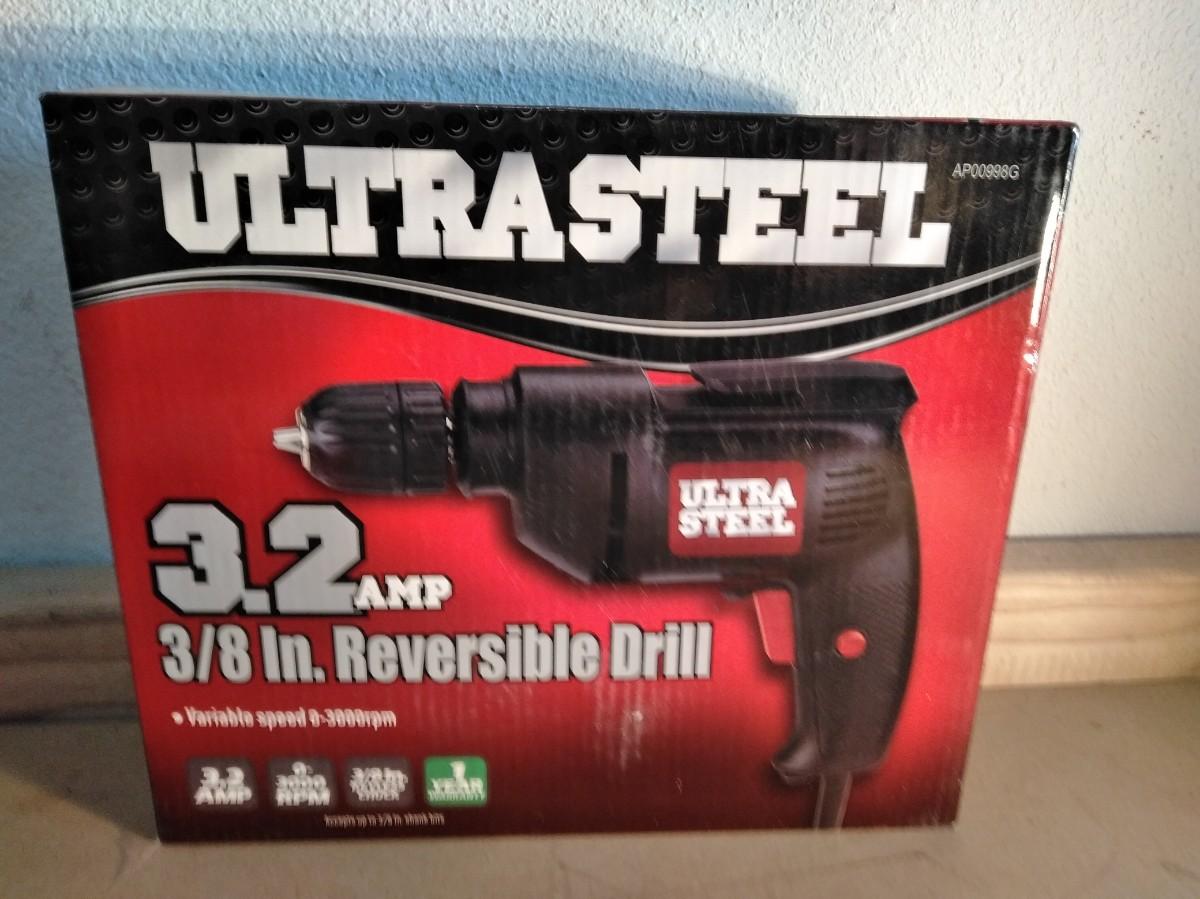 LOT 123 NEW ULTRA STEEL 3/8" REVERSIBLE DRILL WITH BITS