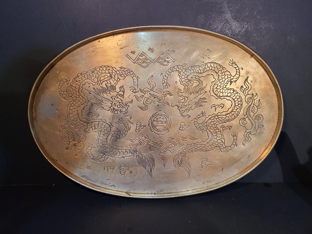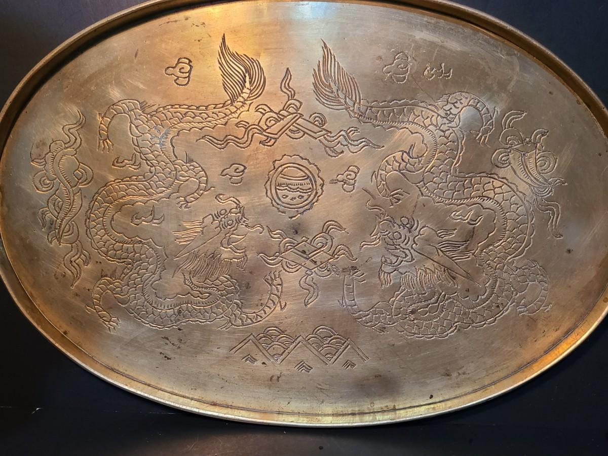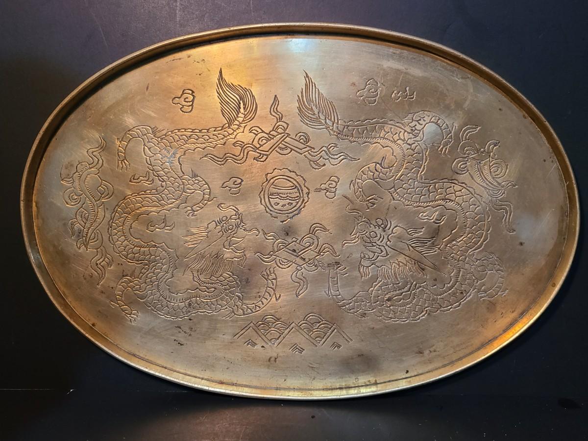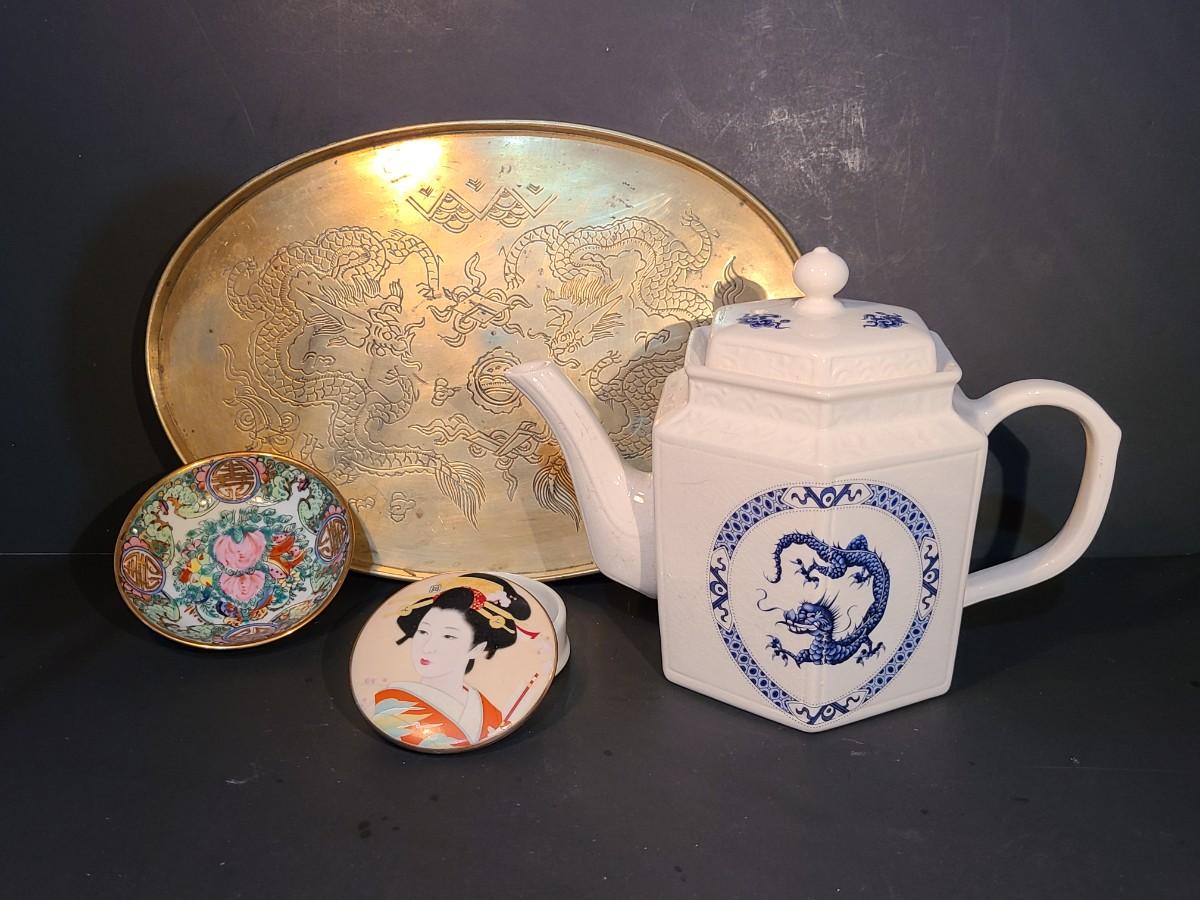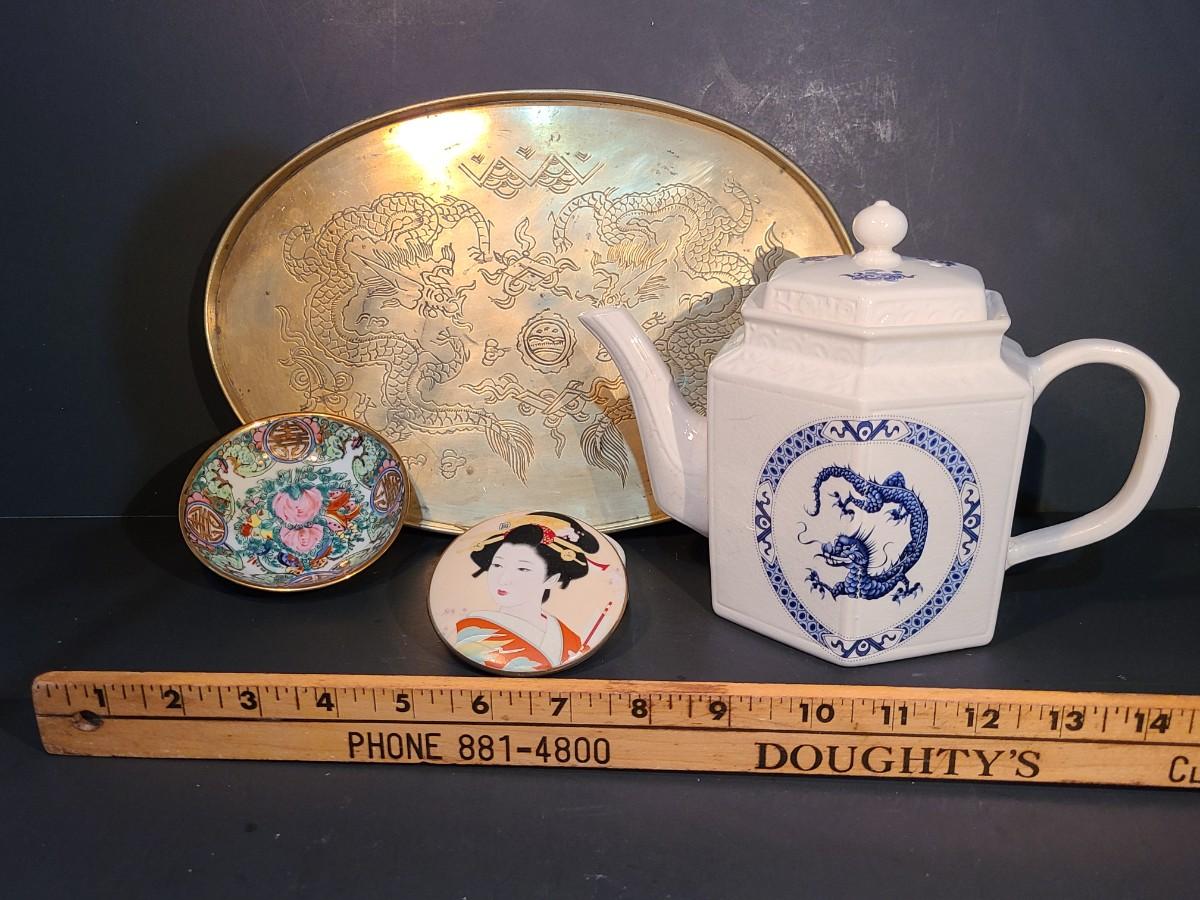 Lot 123: Vintage Brass Dragon Tray, Dragon Teapot and More