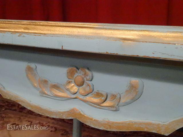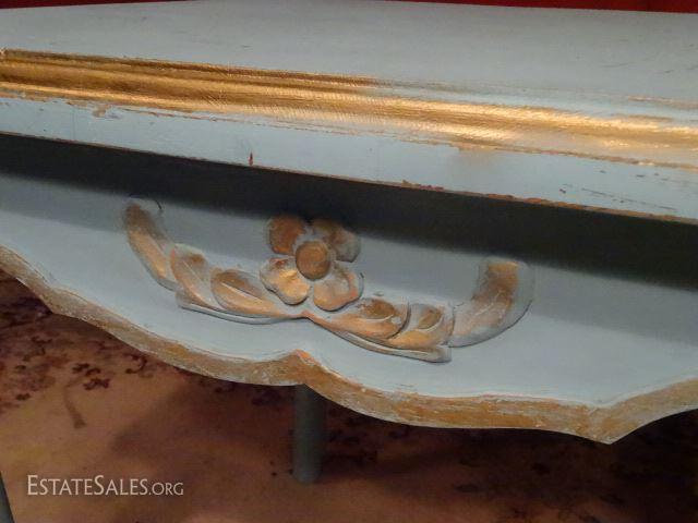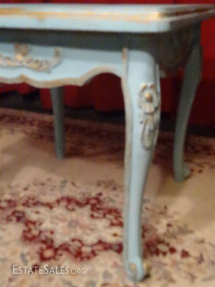 LOT 123A: LOUIS XV STYLE TABLE, SKY BLUE AND GOLD