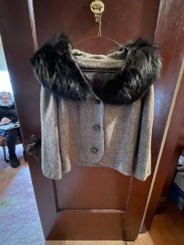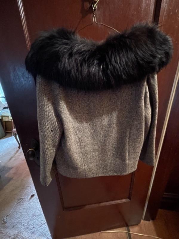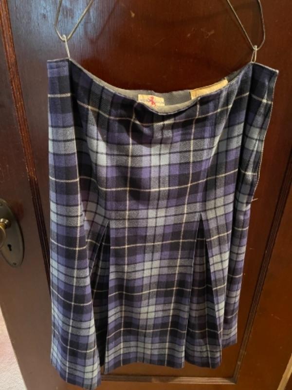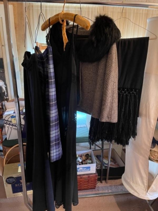 Lot 123B1. Vintage I. Magnin jacket, beautiful black wool shawl, night gown and 2 skirts (one Pendleton)--$85