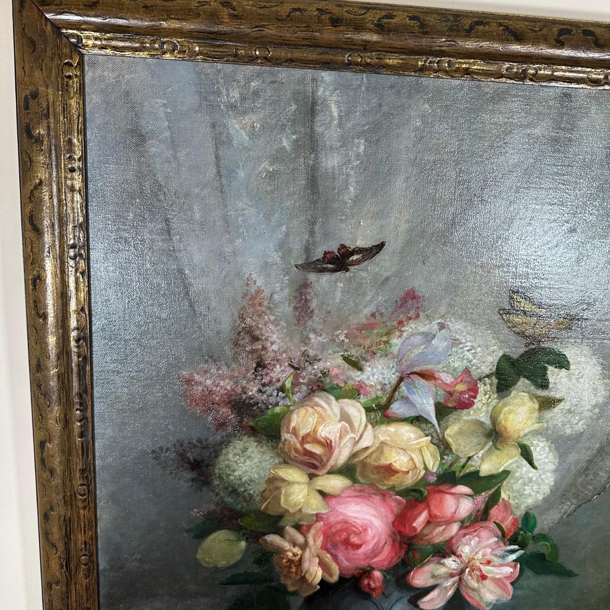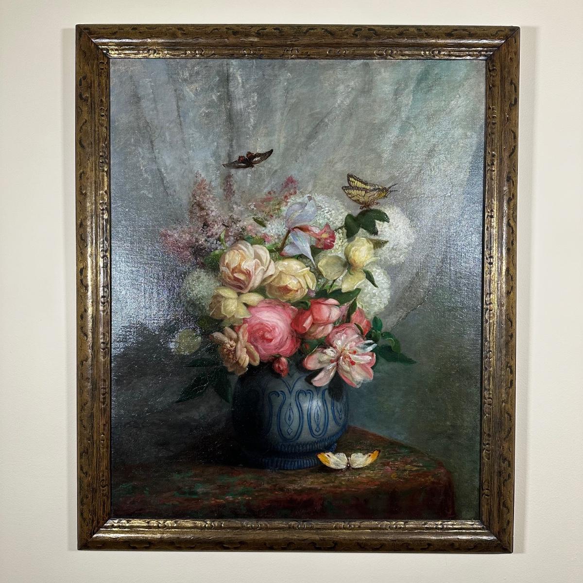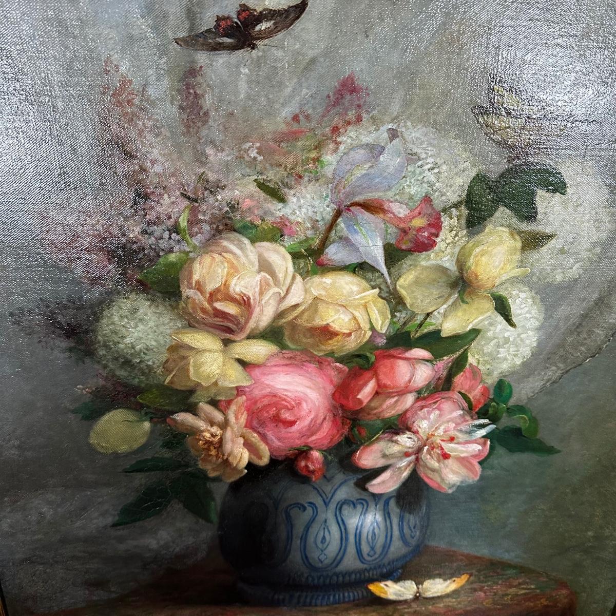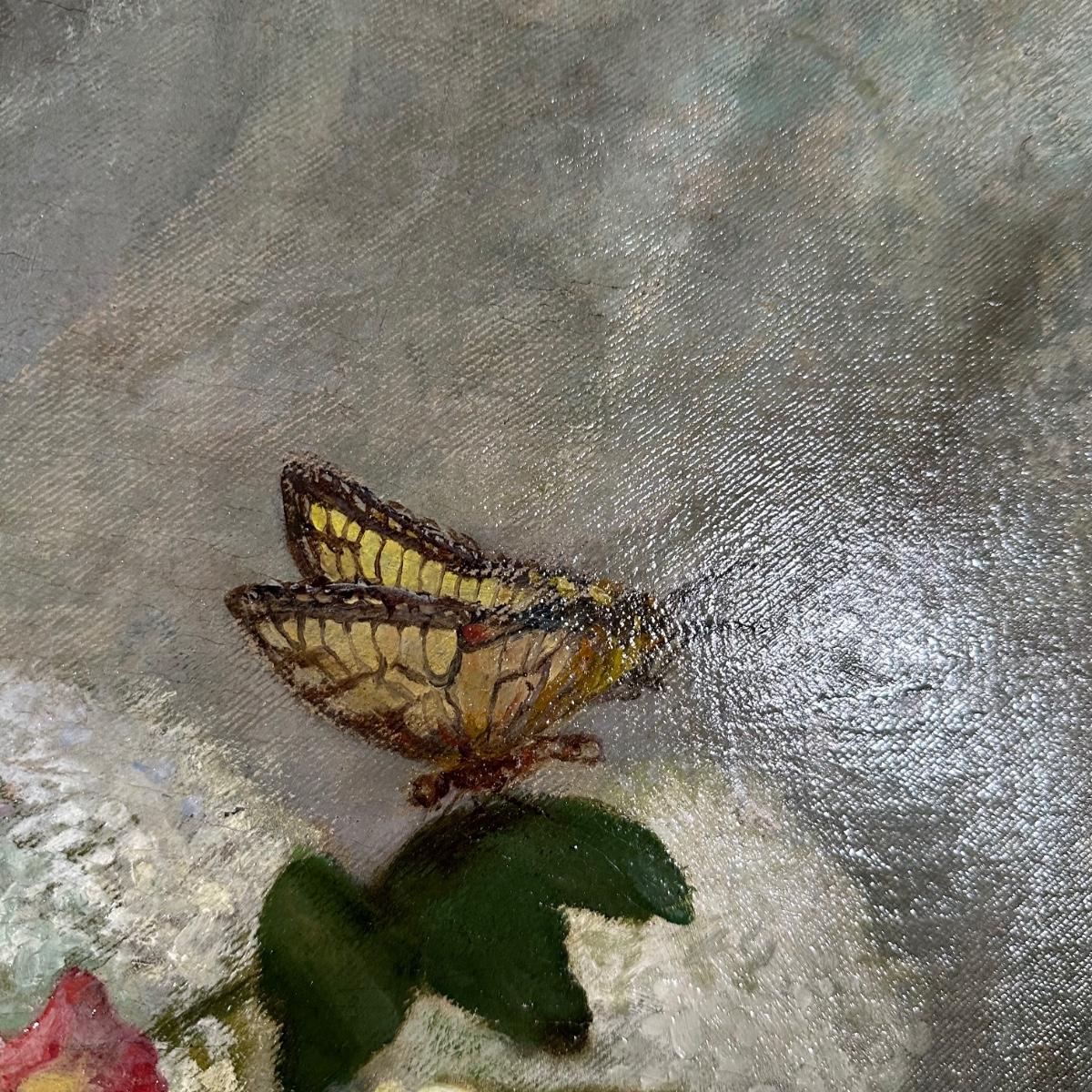 LOT 123H: “Still Life” flowers/butterflies Original Oil Painting Signed By Artist