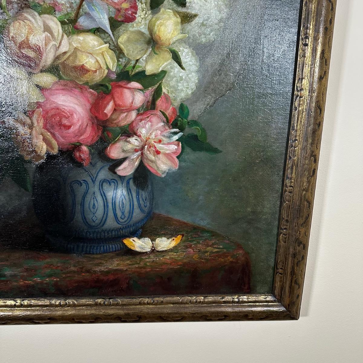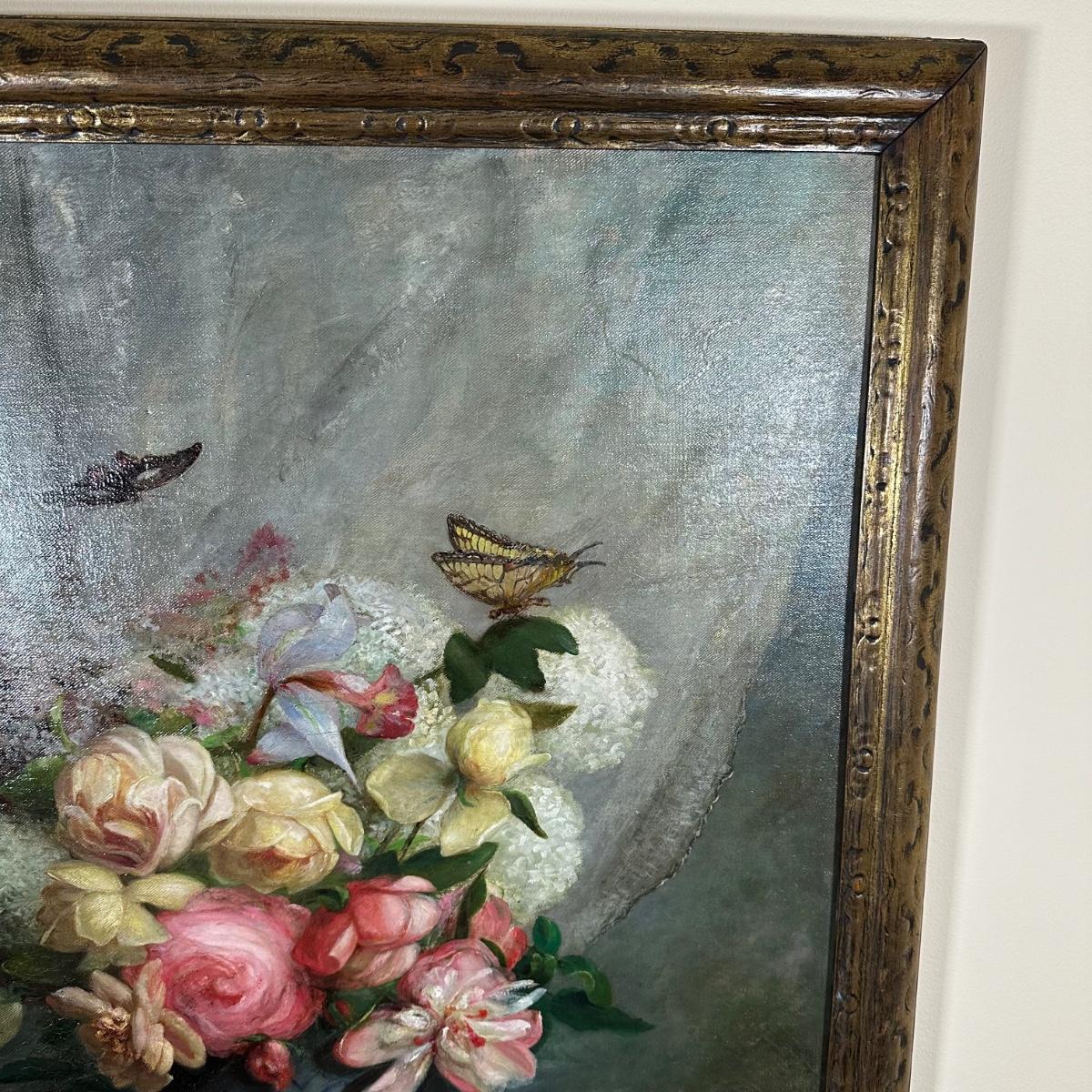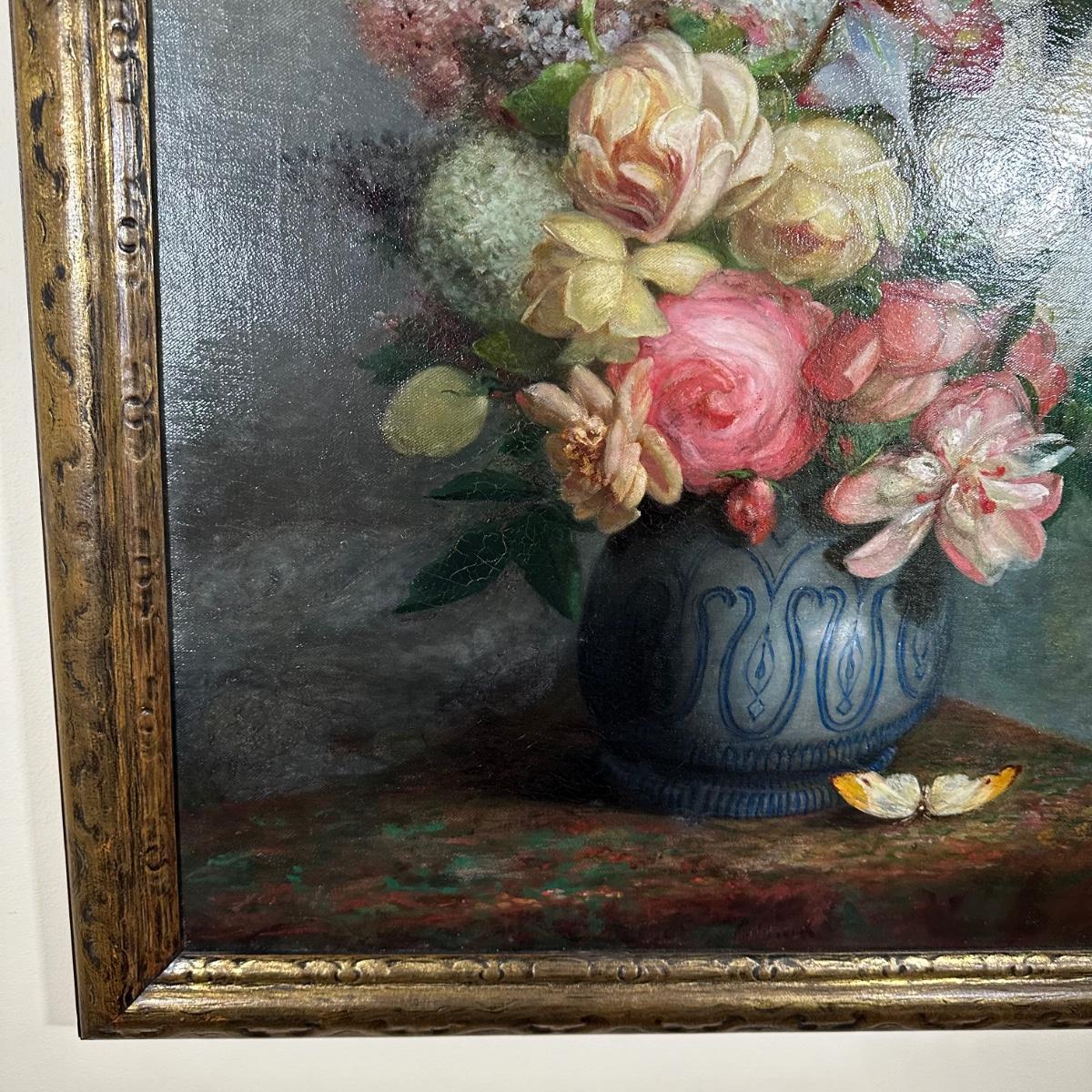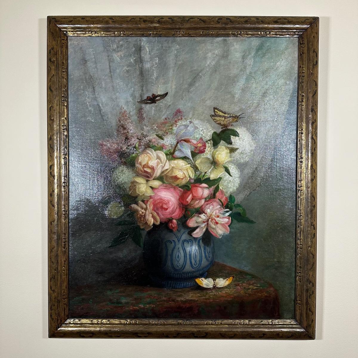 LOT 123H: “Still Life” flowers/butterflies Original Oil Painting Signed By Artist