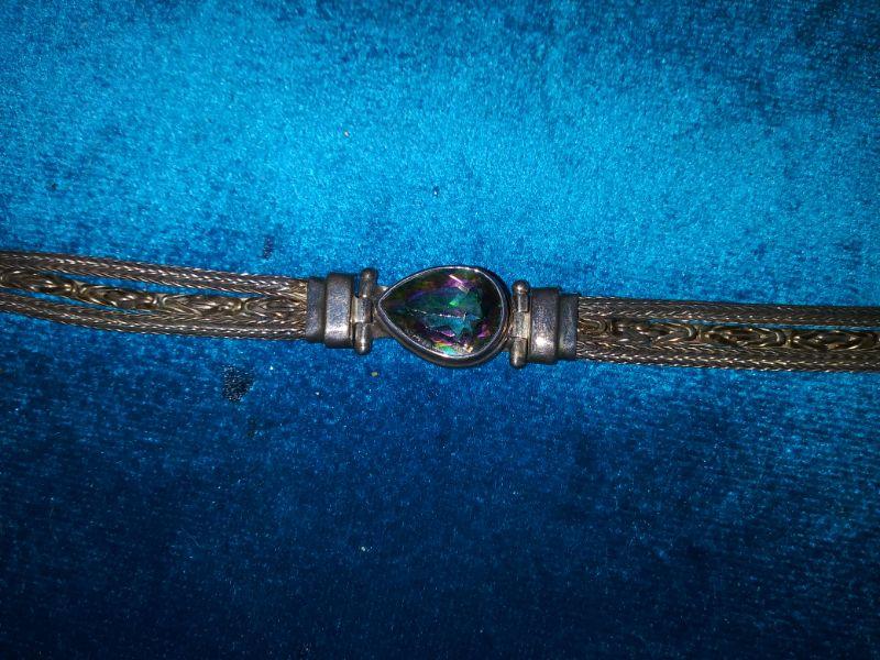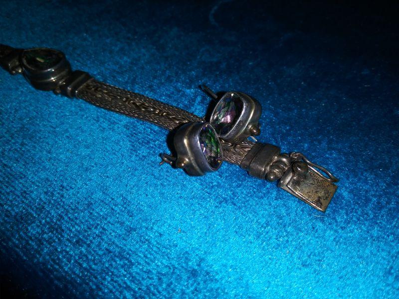 BEAUTIFUL IRIDESCENT STONES SET IN .925 BRACELAT AND EARRINGS