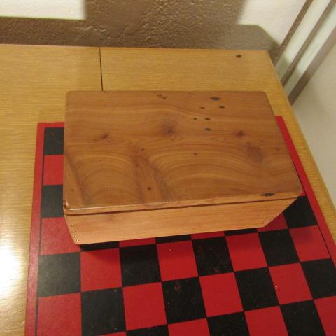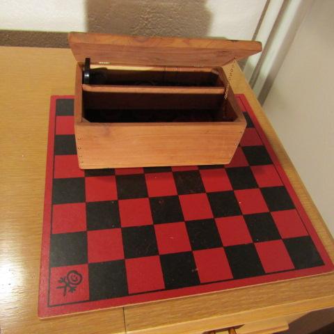 CHECKERBOARD AND PLASTIC CHECKERS IN WOODEN BOX