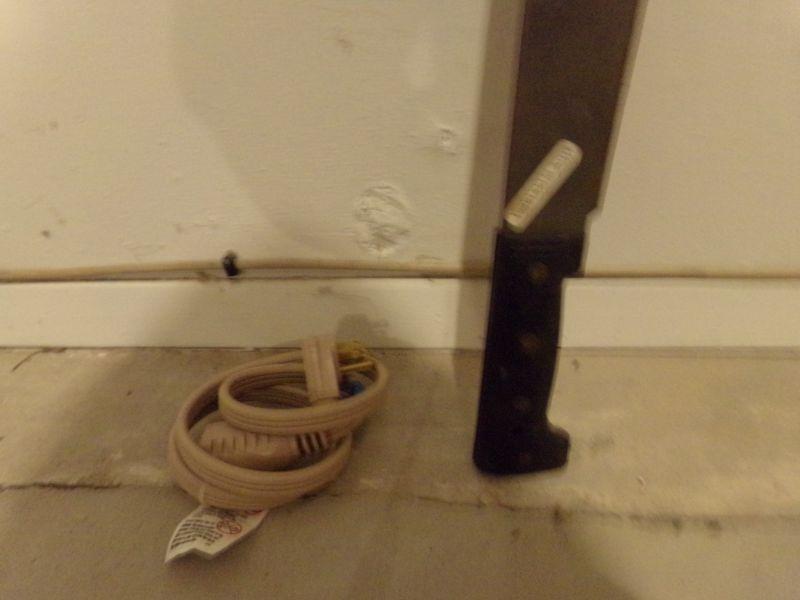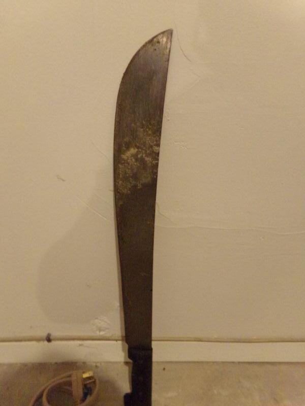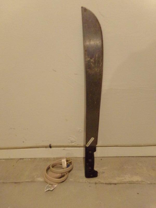 MACHETE MADE IN COLUMBIA AND AN EXTENSION CORD.