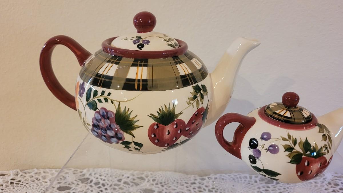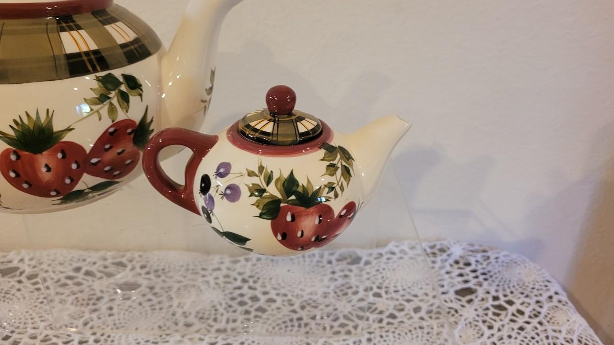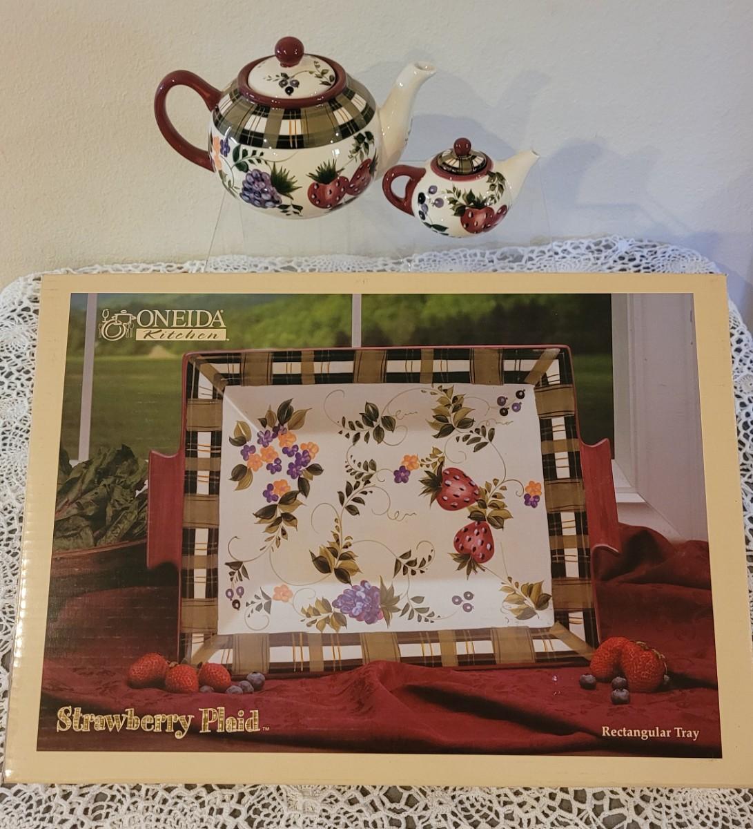 Lot 124: Oneida Strawberry Plaid Tea Set