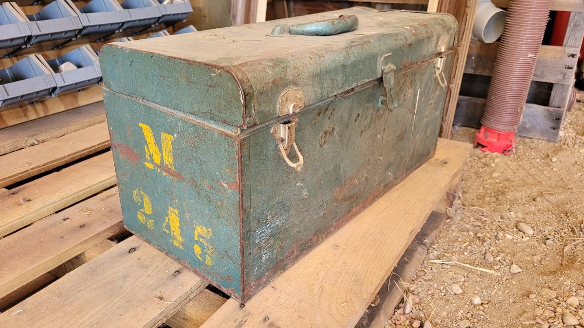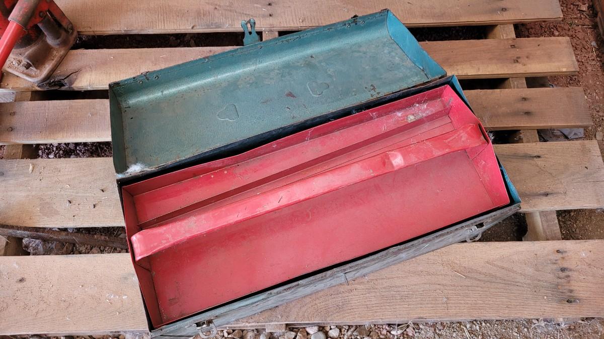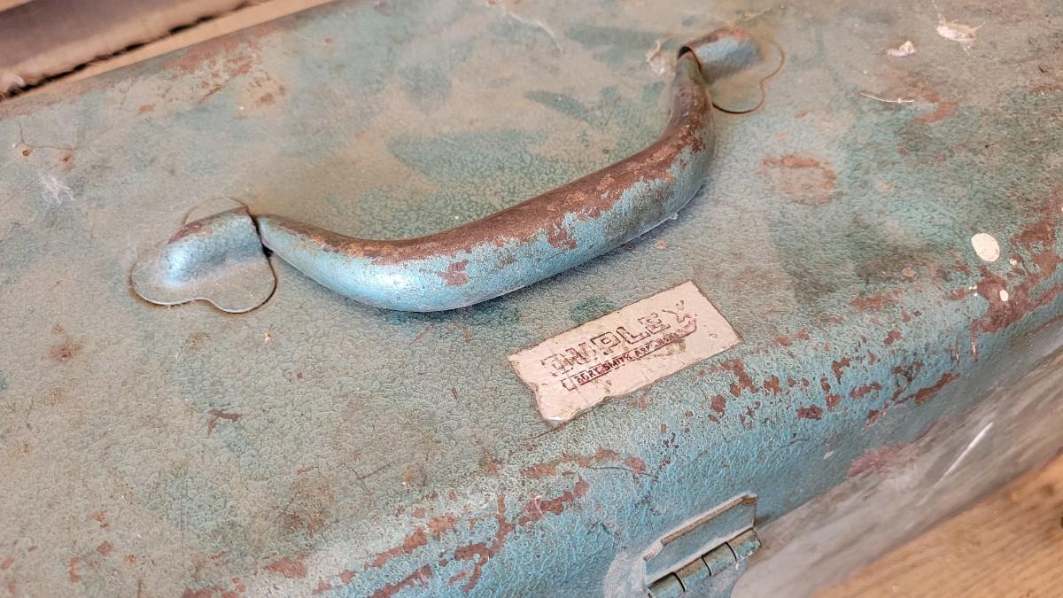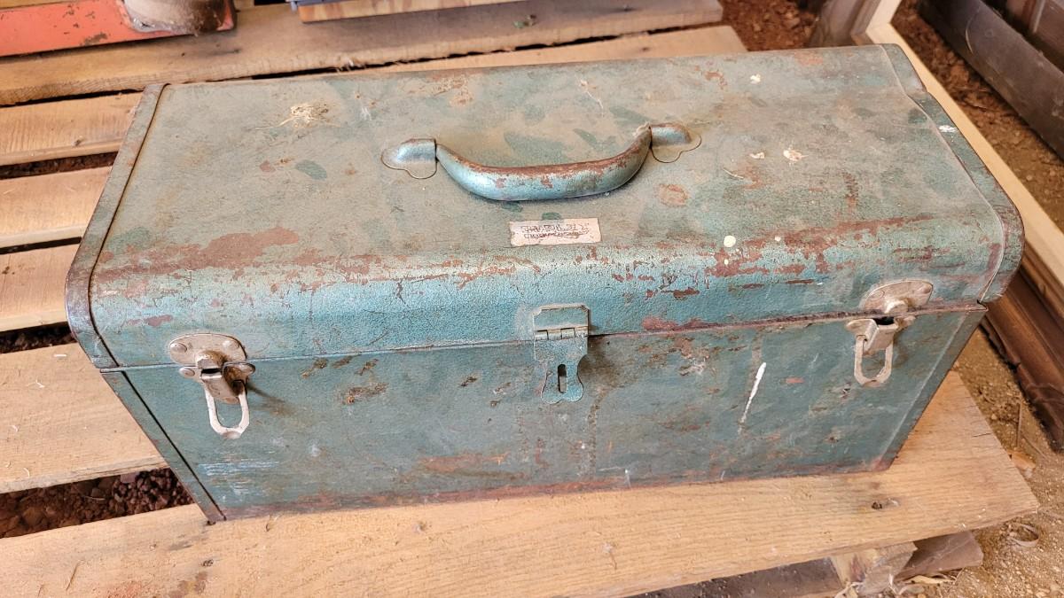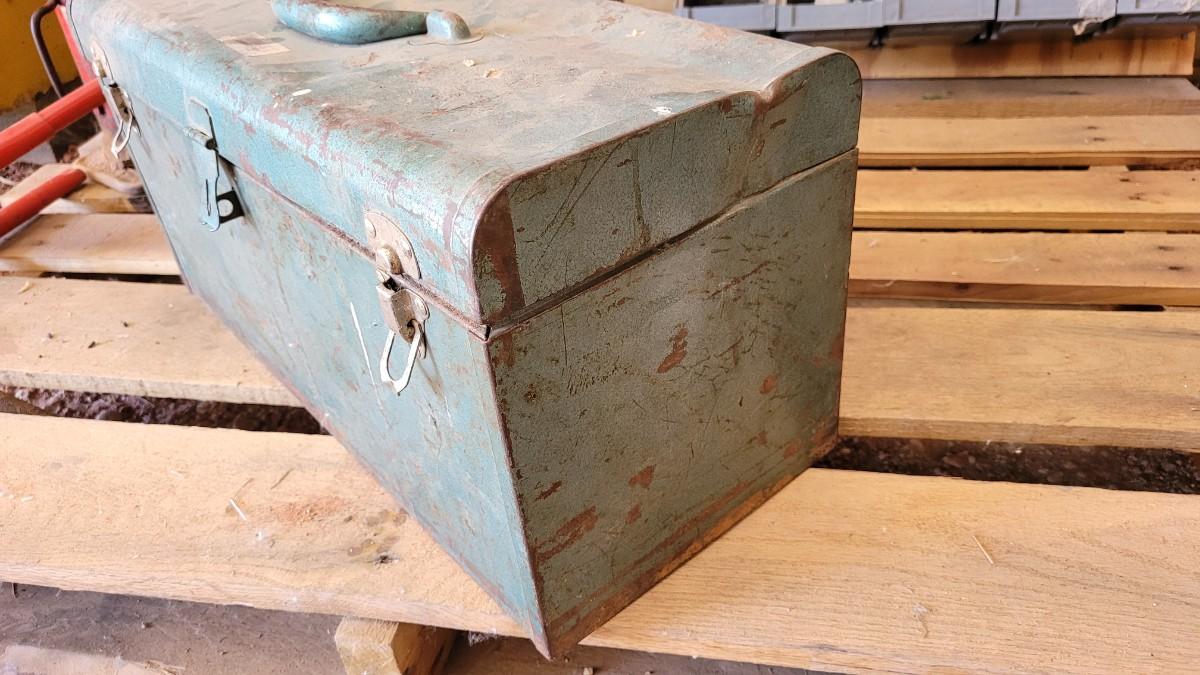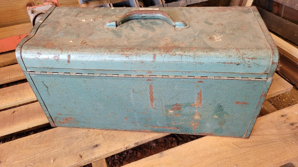 Lot 124: Vintage M 245 Graphic Toolbox Blue Metal w/ Insert