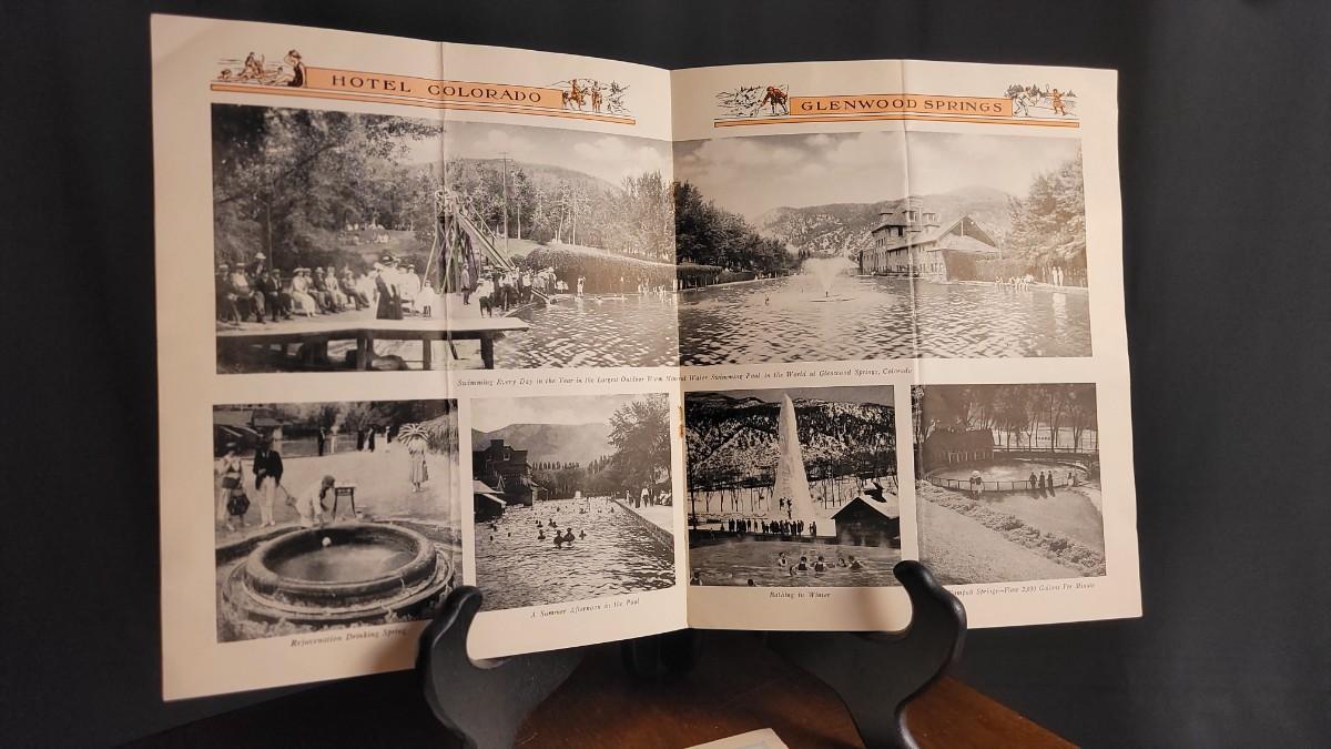 Antique pair of GLENWOOD SPRINGS Advertising Brochures filled with lots of photos that show the leisure culture of Early 1900's Colorado.