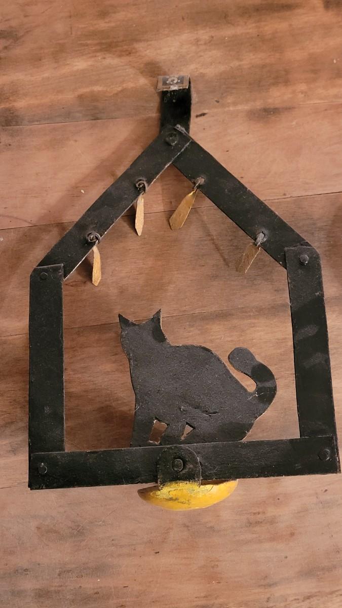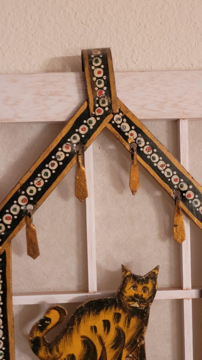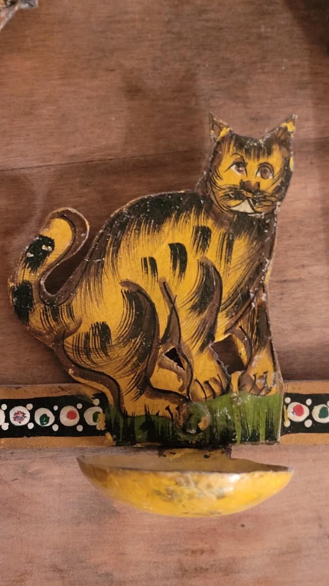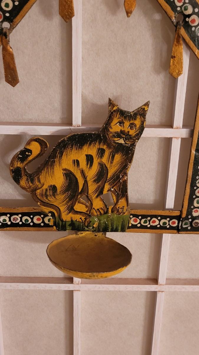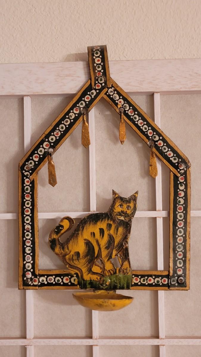 Lot 124: Vintage Handpainted Metal Hanging Cat Candleholder