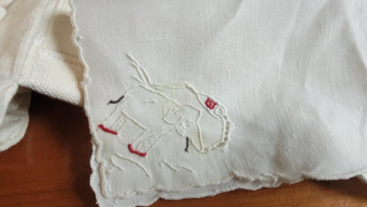 Off White Dansk Placemats, 1940's Cocktail Napkins with a funny scene and 2 Elephant Cocktail Napkins