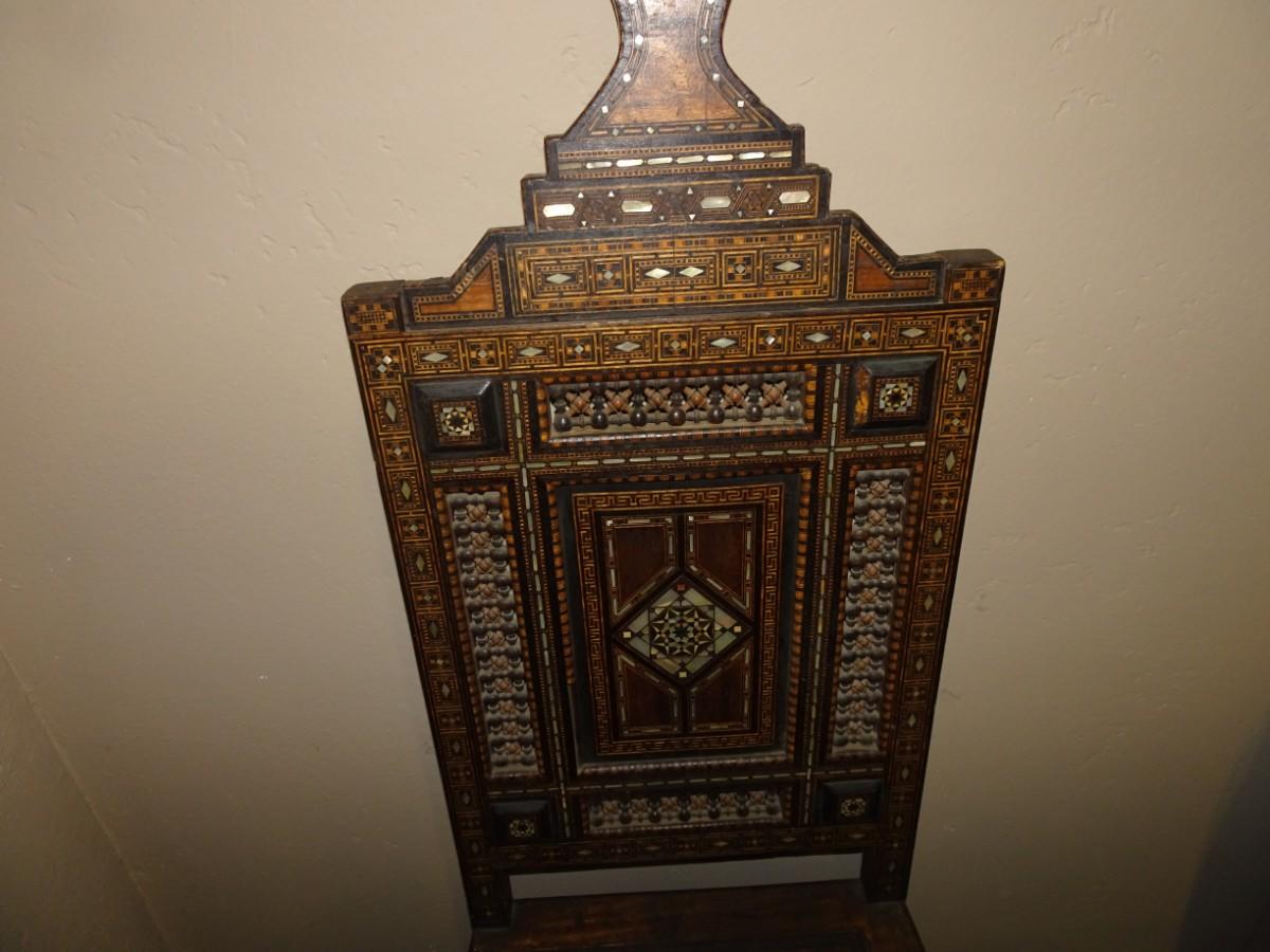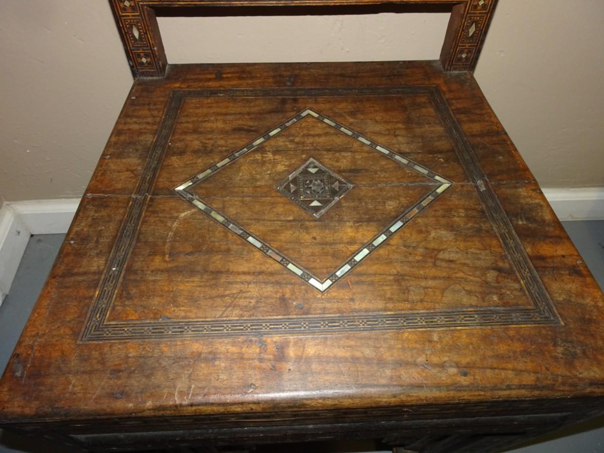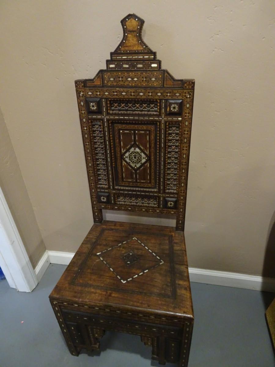 LOT 124 WOOD INLAY AND CARVED CHAIR