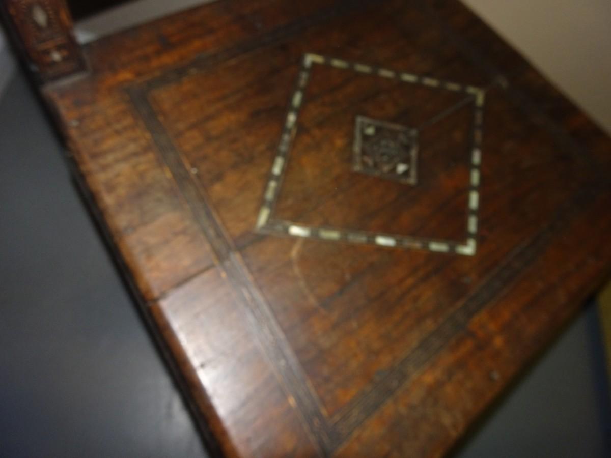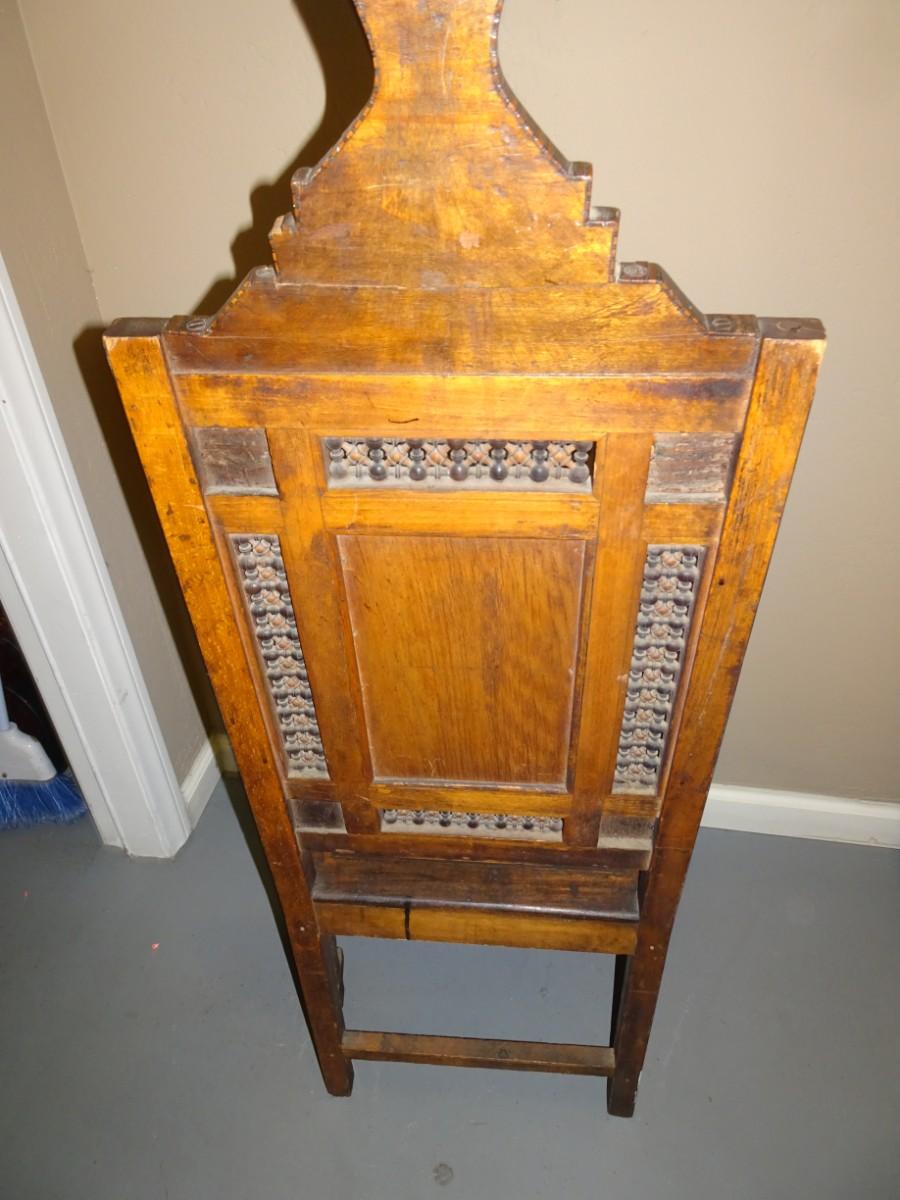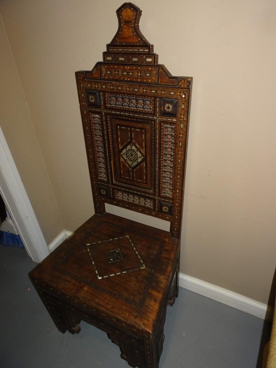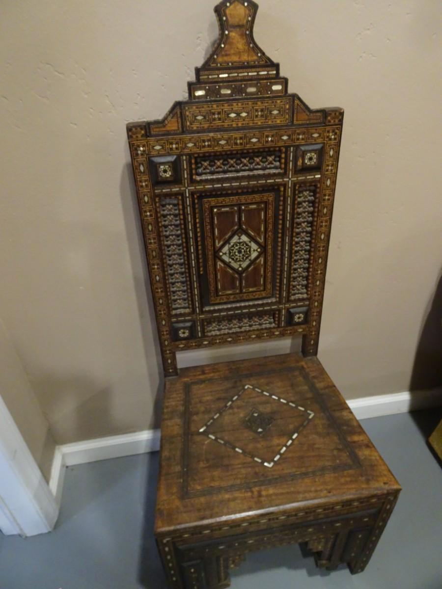 LOT 124 WOOD INLAY AND CARVED CHAIR