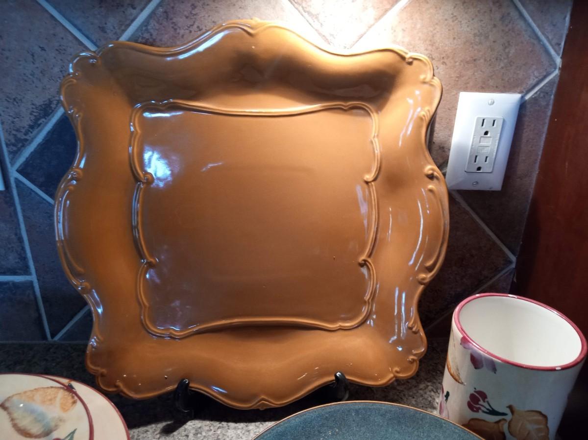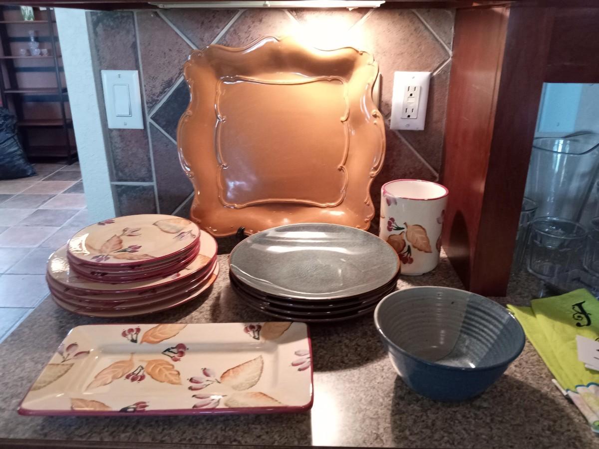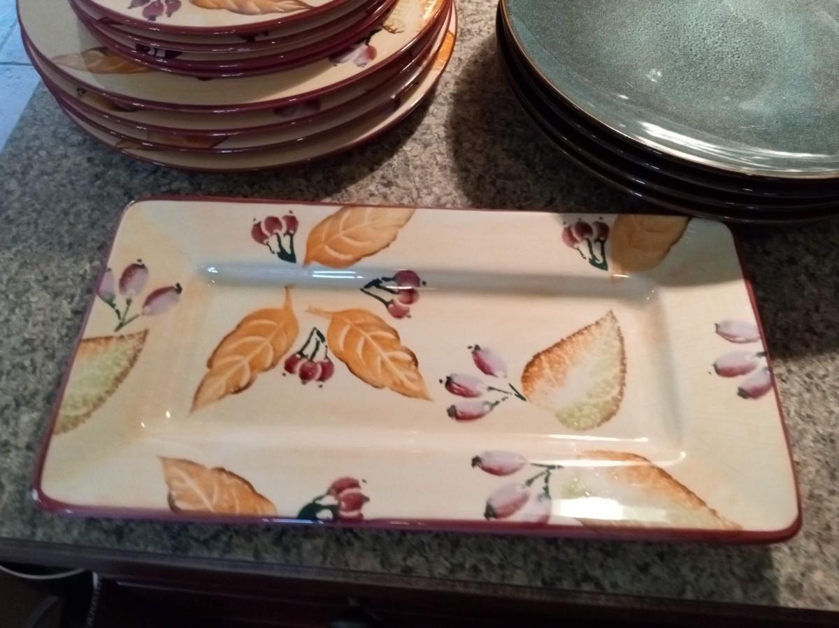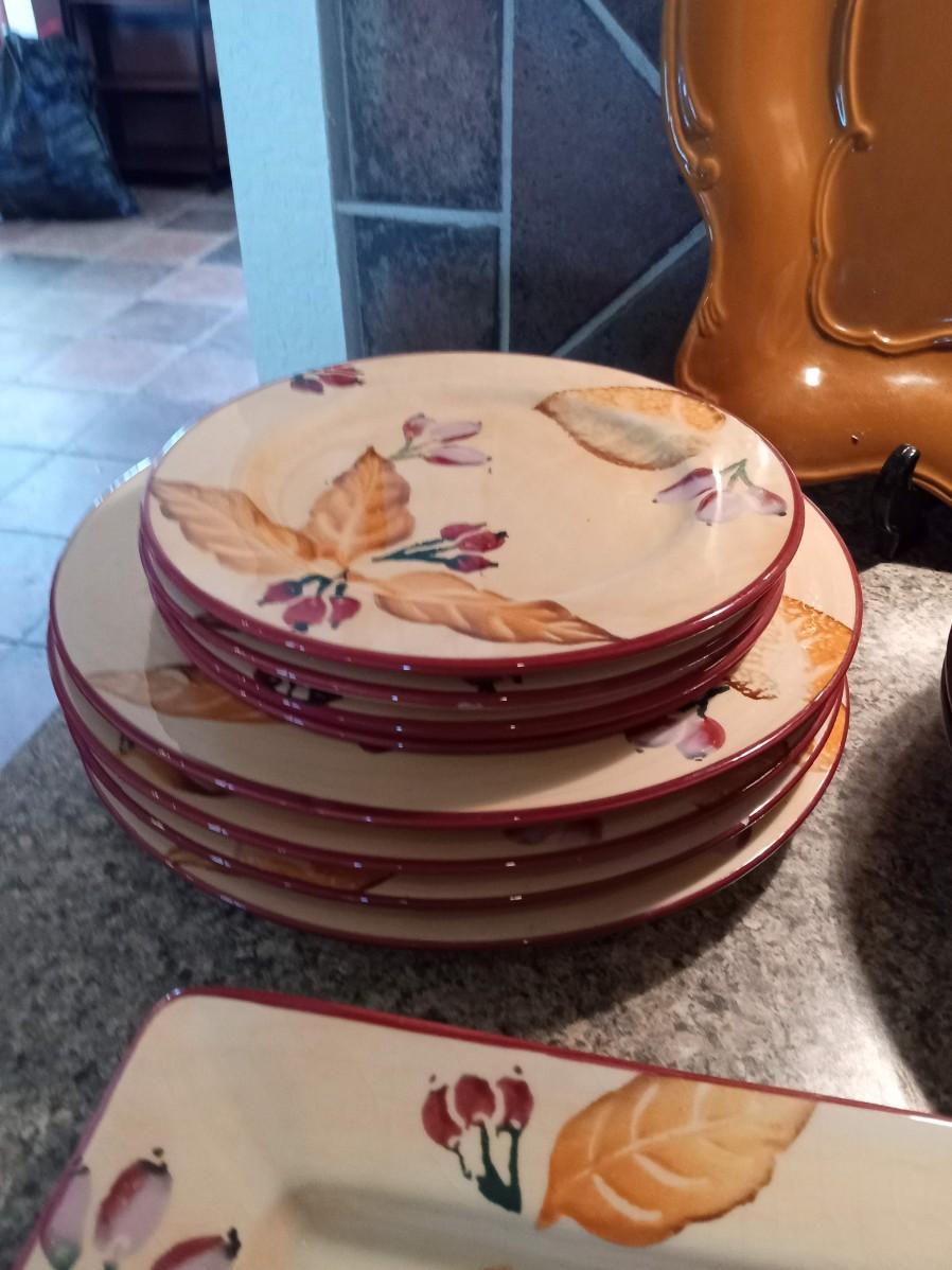 16" PLATTER, 4 FLORAL DINNER PLATES, 4 SALAD PLATES, UTENSIL HOLDER AND SERVING PLATE (THERE ARE A FEW CHIPS)