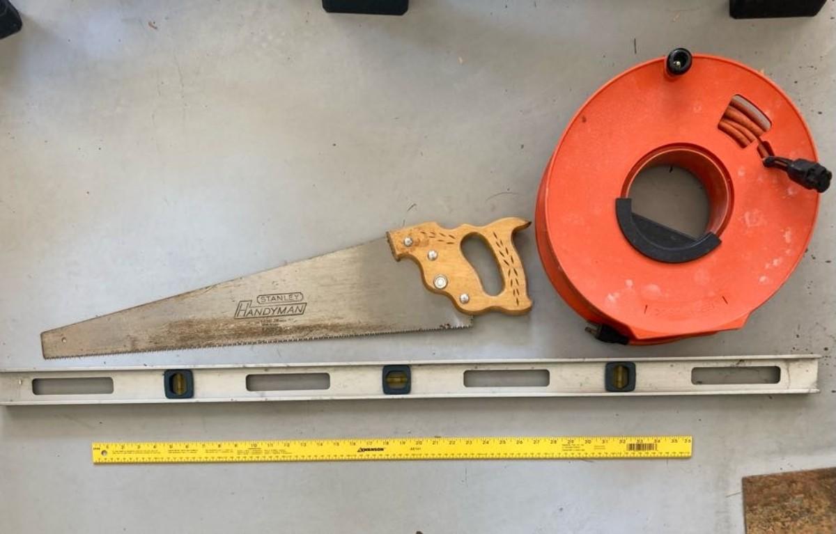 LOT 124 EXTENSION CORD ON REEL, HAND SAW, LEVEL