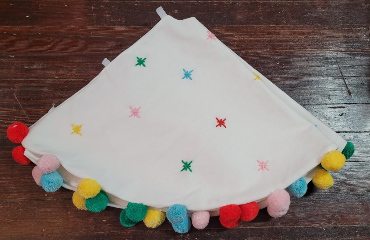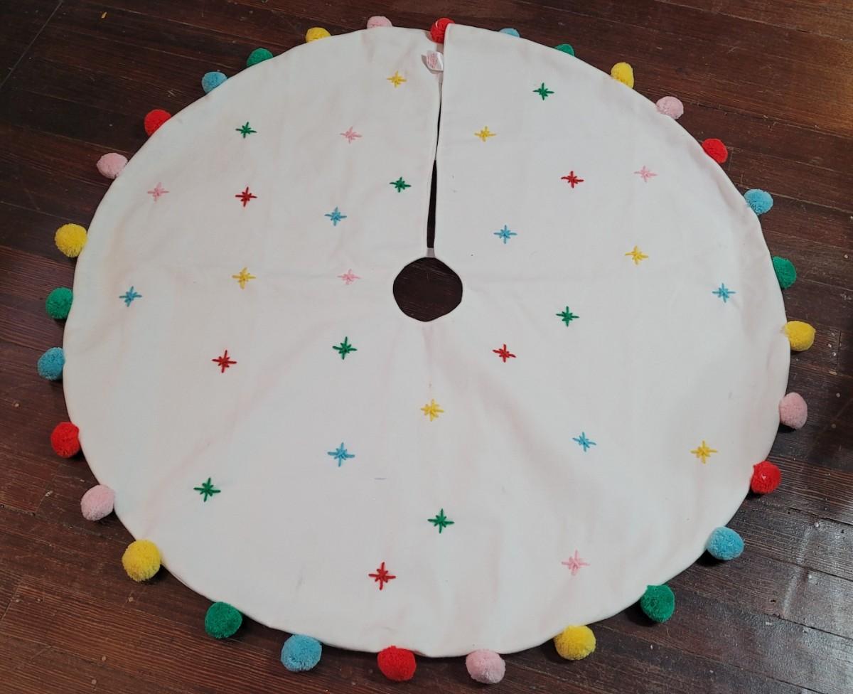 Lot 124: White Tree Skirts with Colorful Pom Poms
