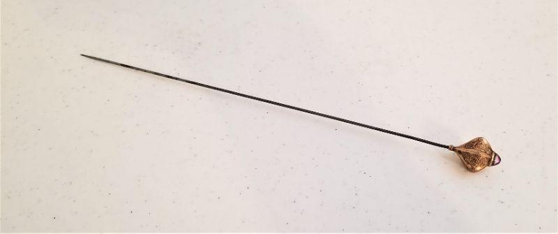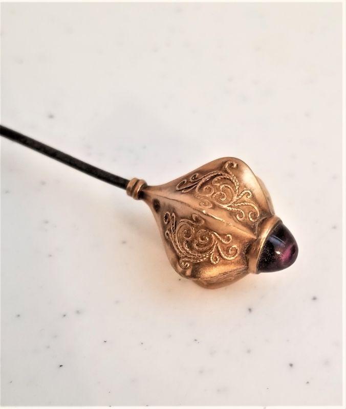 Lot #124  Antique Hatpin with 14kt Gold top - Cabochon Amethyst