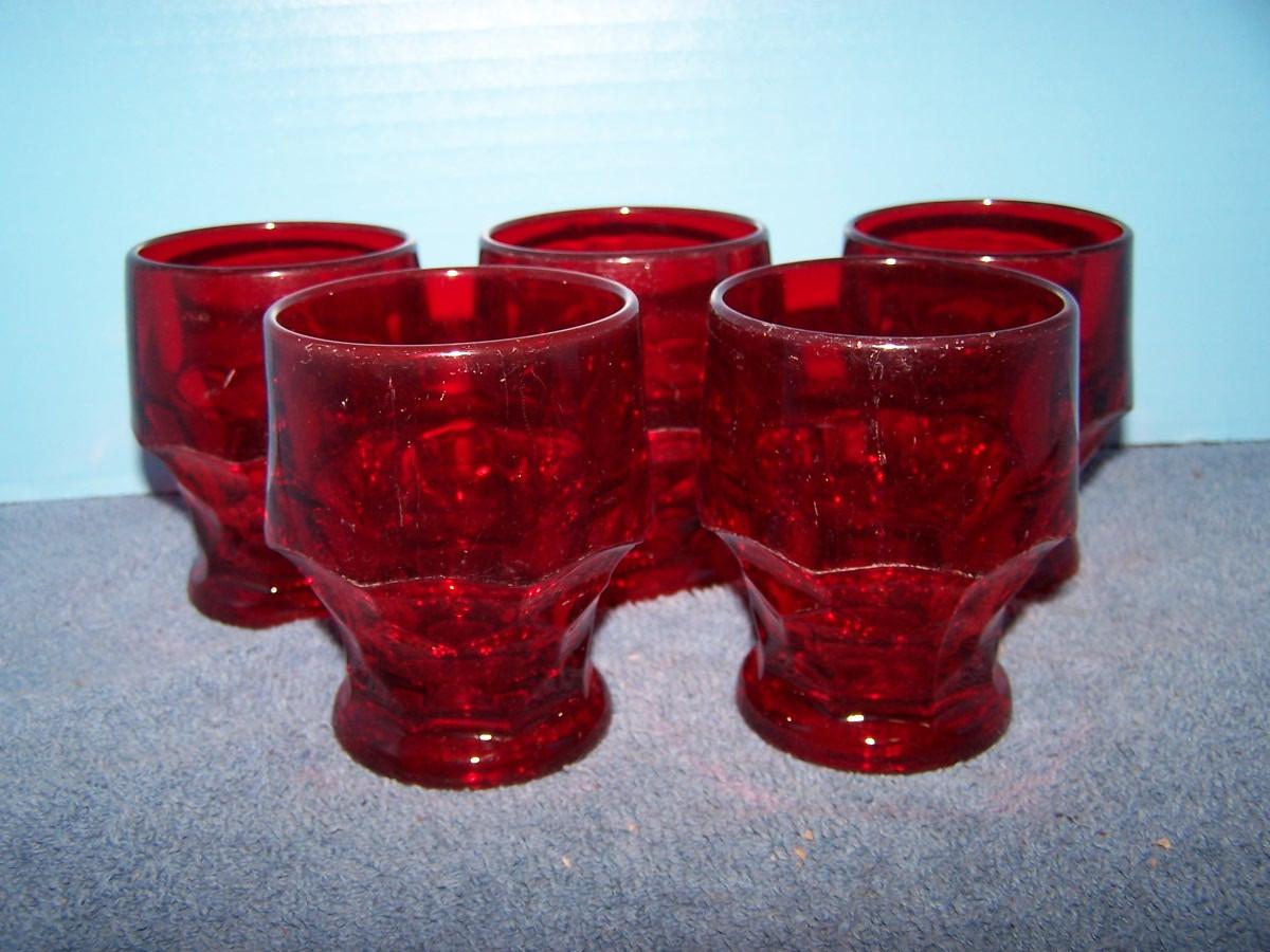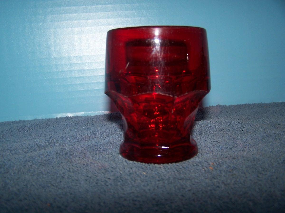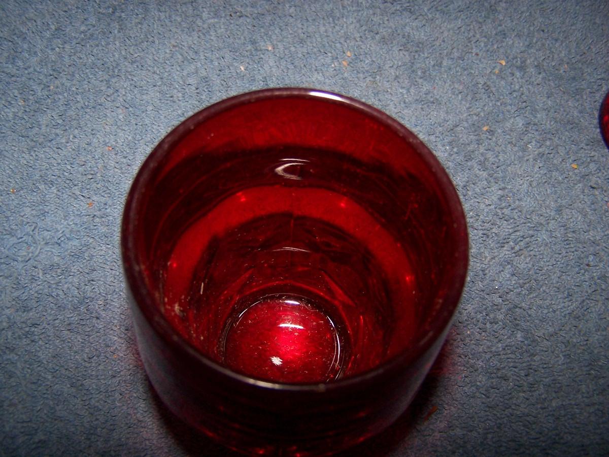 THESE ARE GORGEOUS VINTAGE RUBY RED GLASSWARE!!! UNMARKED.. 3 1/4'' TALL.. LIGHT WEAR...