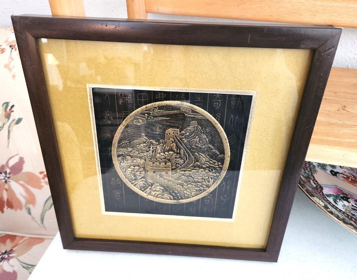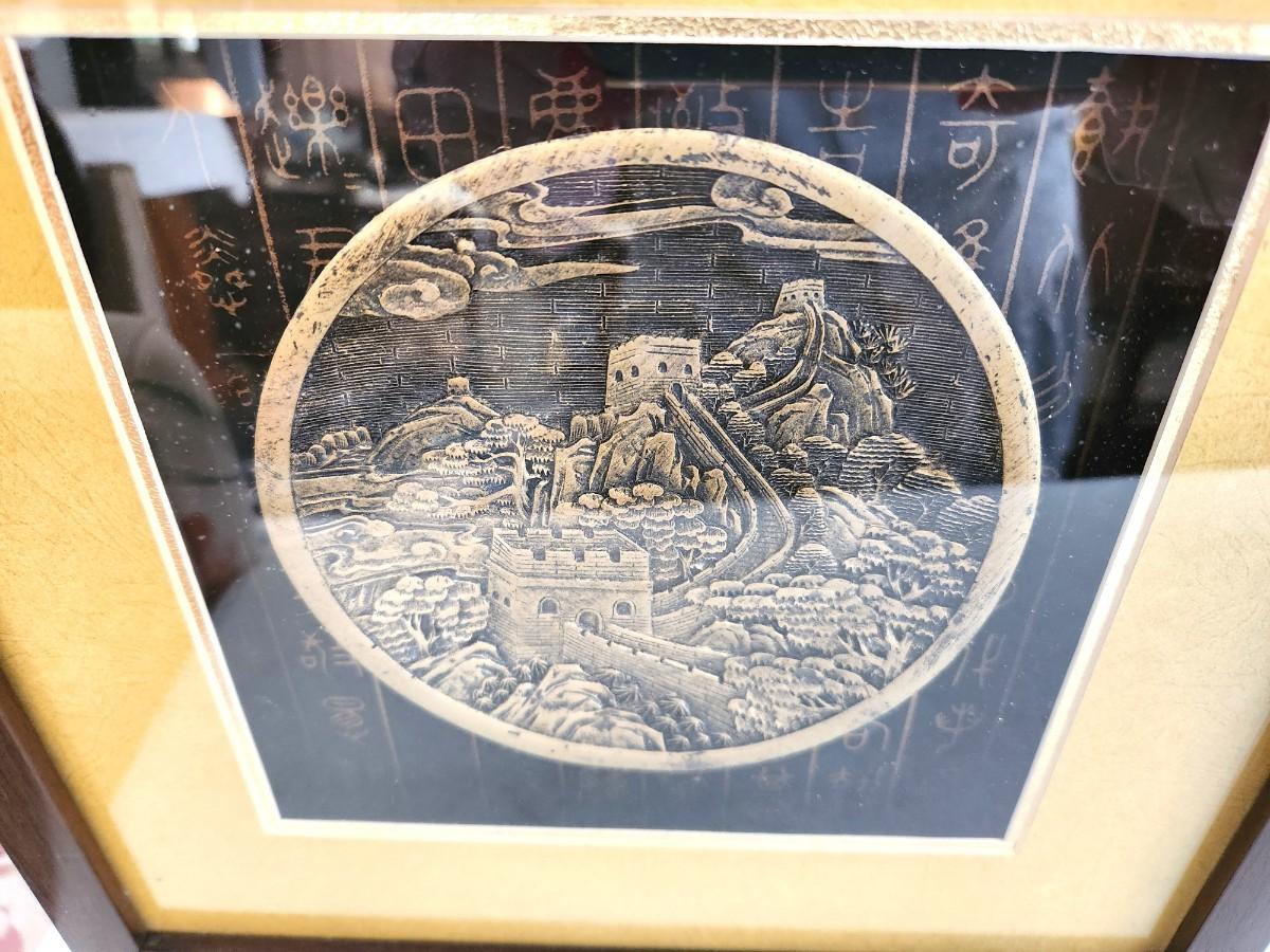 Attractive Great Wall of China framed art piece - 12" x 12". Good condition. Very detailed.