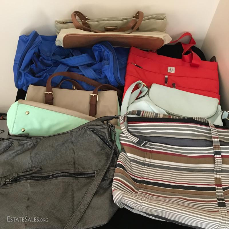 Seven stylish handbags including Baggallini and Tommy Hilfiger. Largest bag is 18"l x 10"w. See photos for details.