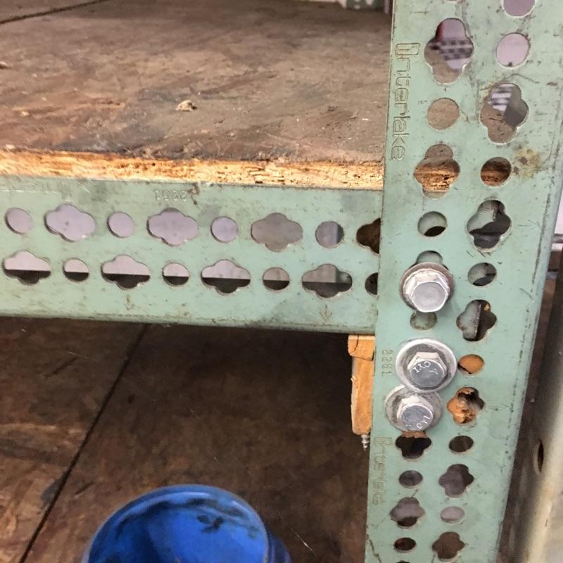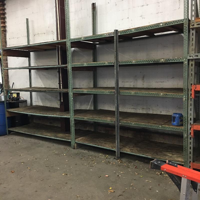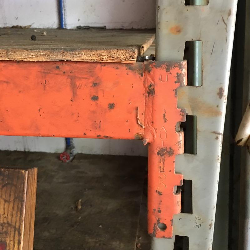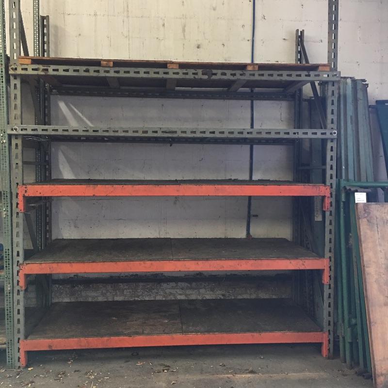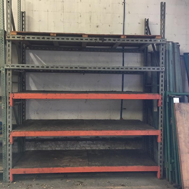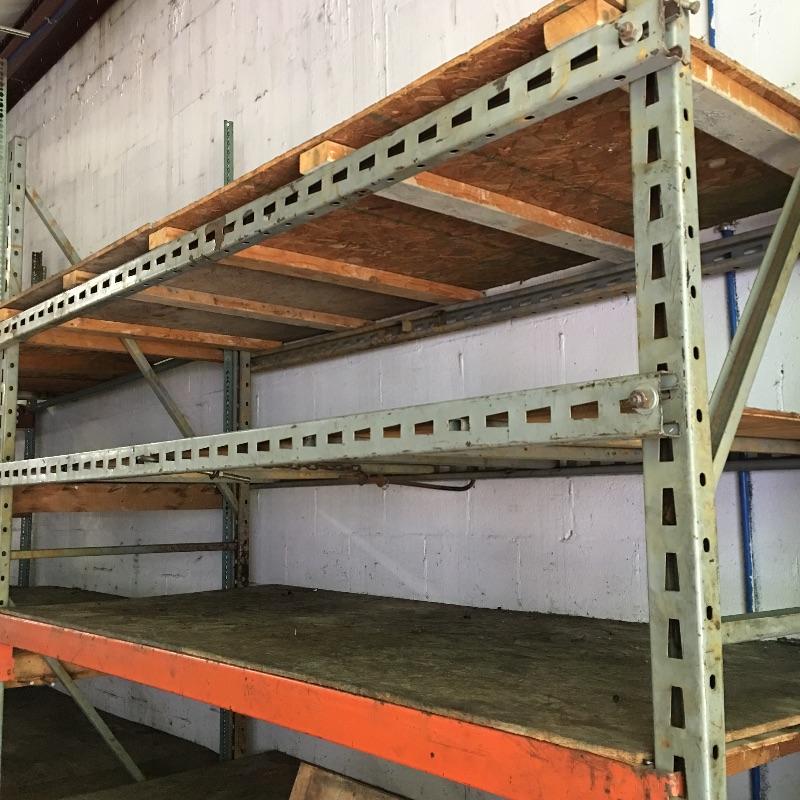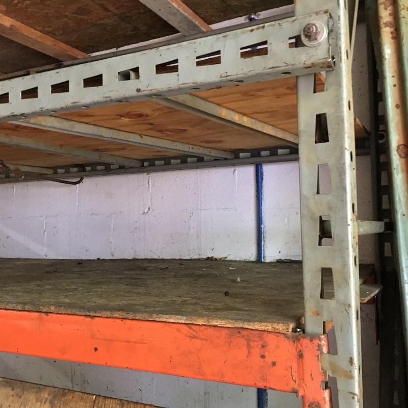 Industrial racks. Get your shop all decked out with these awesome racks. Orange rack measures 40” x 102” x 116” and Green rack measures 35” x 195” x 132”. Some welded spots but Rack will be disassembled for pick up. Bring help item is substantial.