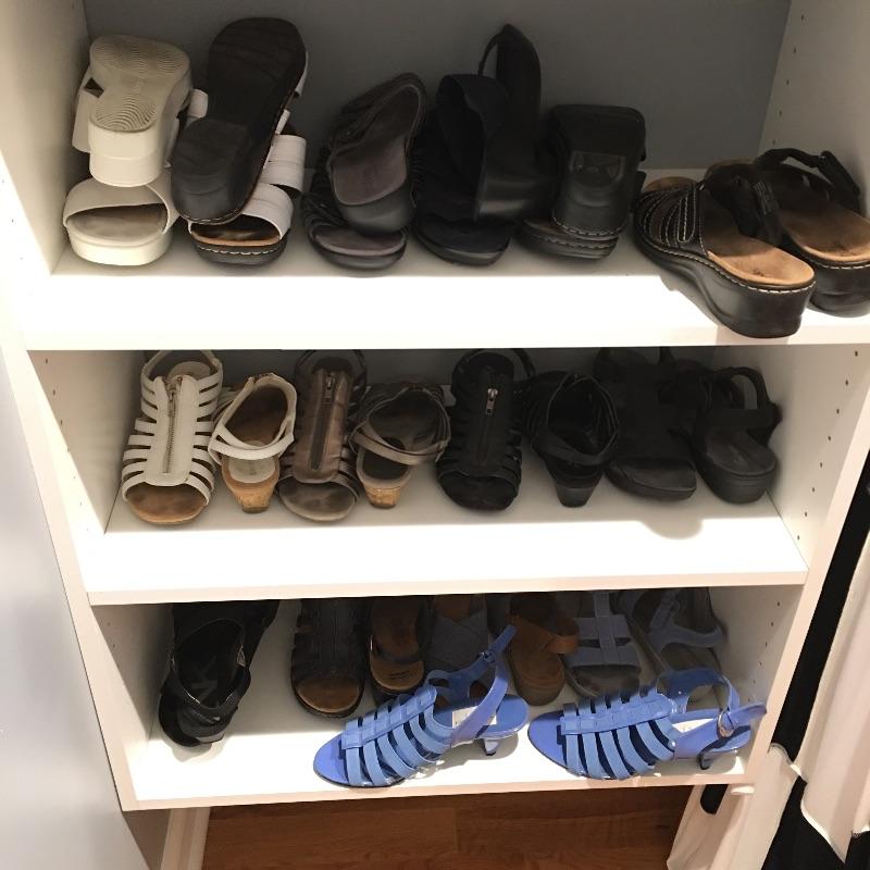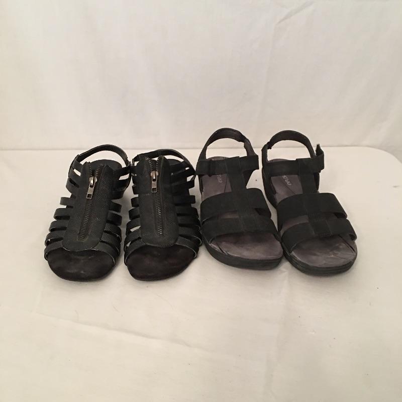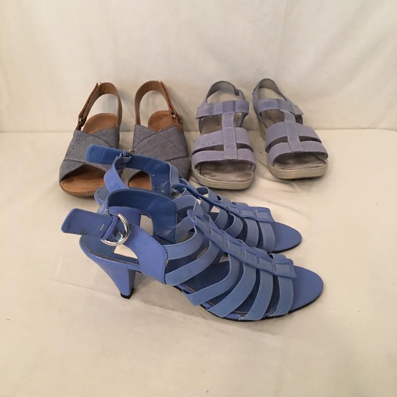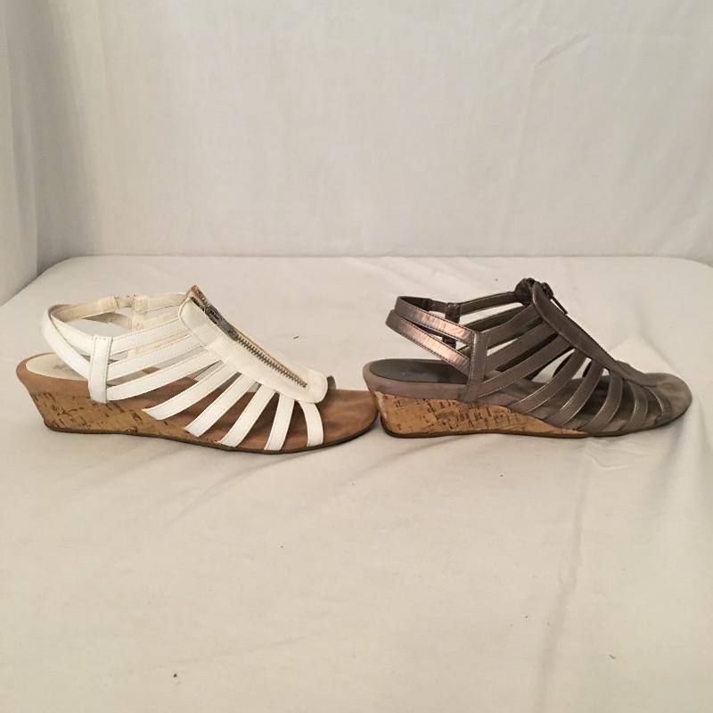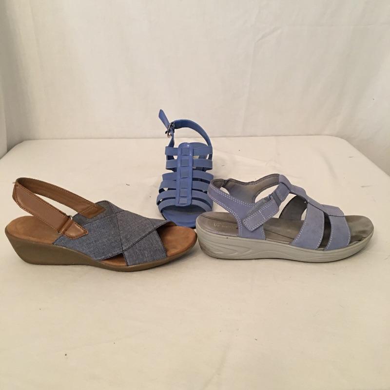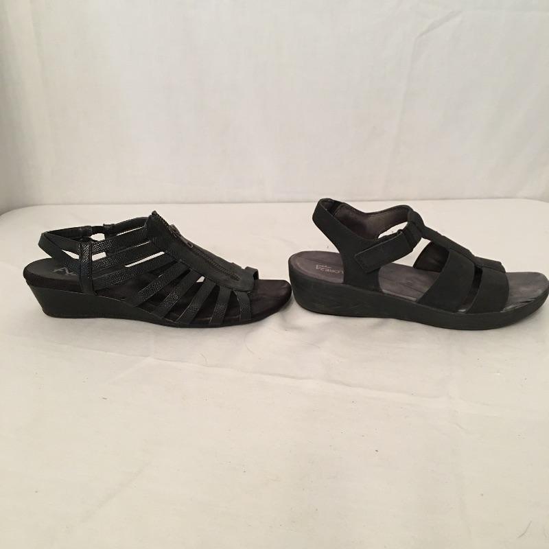 Can a woman ever have enough shoes! There are fifteen pairs of ladies sandals in total here and for your sake, cross your fingers and toes that they are in your size! This great selection of sandals contain a multitude of colors, styles and materials and they are all in the size range of 9's to 9.5's. Included are name brands such as Anne Klein, Clark’s, Aerosoles, Ecco, Aravon and more.