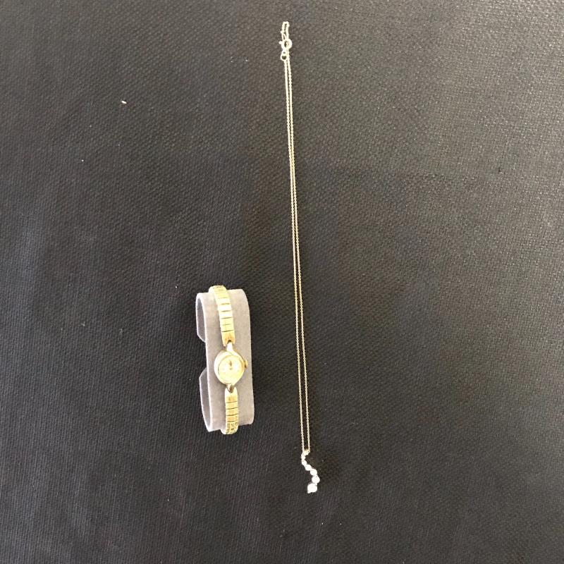 Lady’s Elgin Watch and Sterling Silver necklace with stone pendant. Lot is available for shipping or local pick up in Asheville, NC.