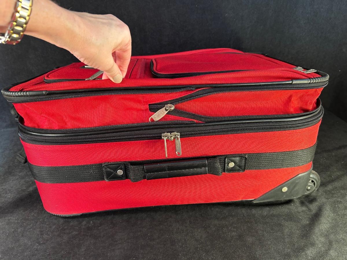 21” x 15” x 8 1/2” Leisure brand rolling red suitcase
