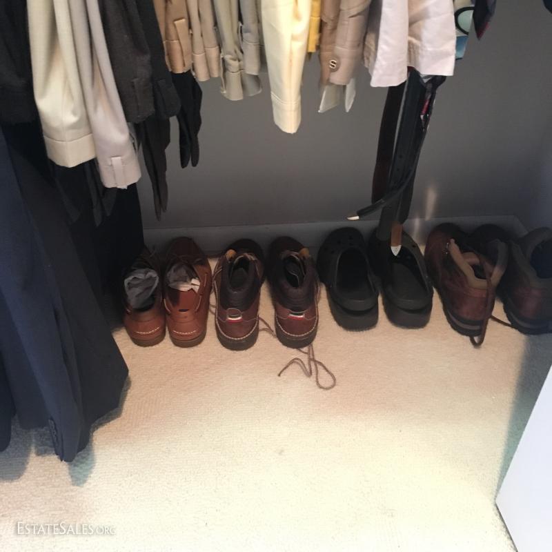 Sizes are mostly large end extra-large shirts, 36 waist paints, 12 shoes