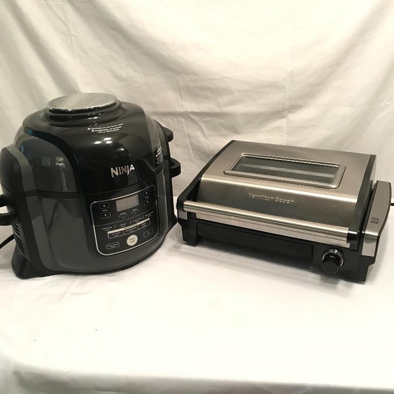 Ninja Food TenderCrisp Pressure Cooker is new in packaging. This beast seems to do it all! This product boasts quicker cook times plus crispier food! We’ve paired this gem with the Hamilton Beach Flavor Indoor Grill. The grill turned on when prompted and is also new. The Ninja was not tested, protective covering is still on its cord. See photos. Local pick up only.