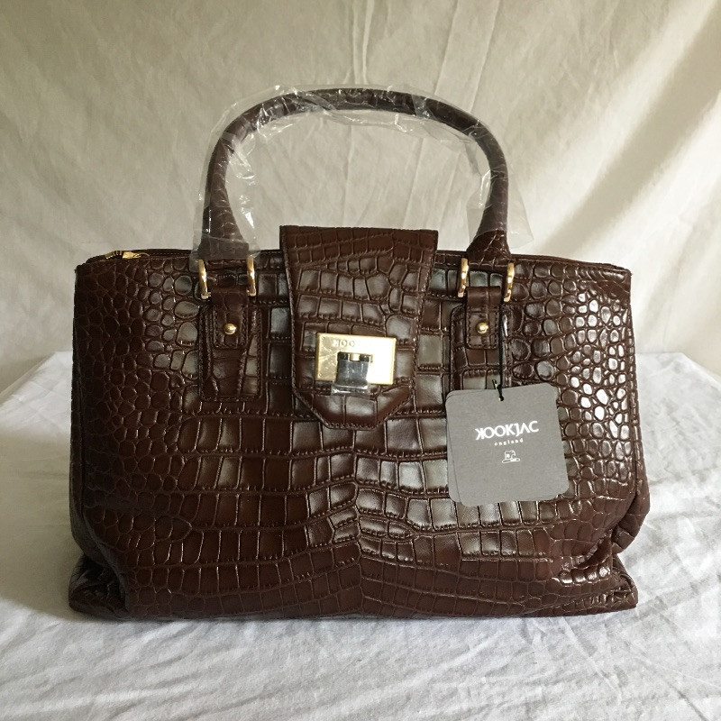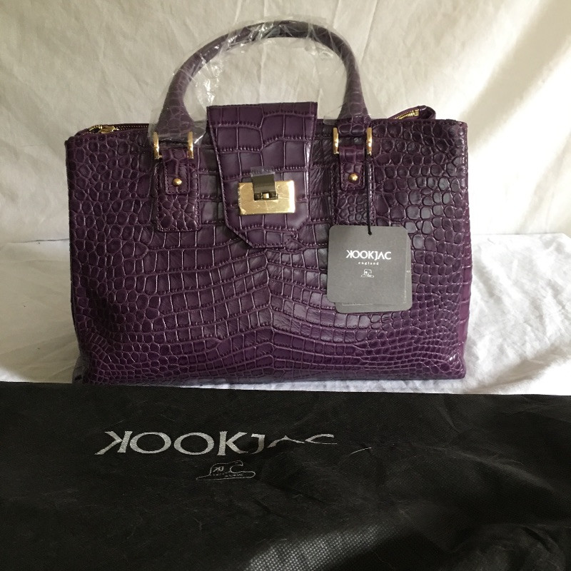 Pair of New Kookjac leather purses one in purple the other in brown with duster bags. Be ready for any occasion with these trendy bags.