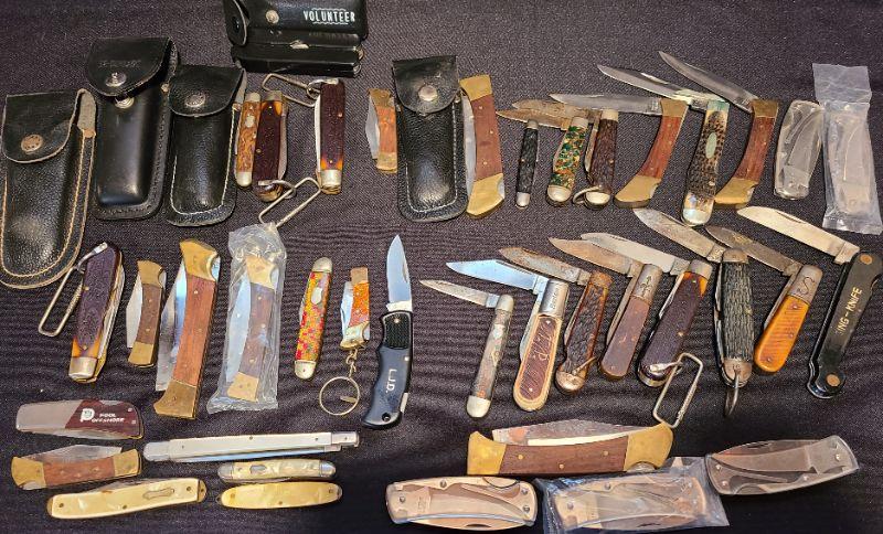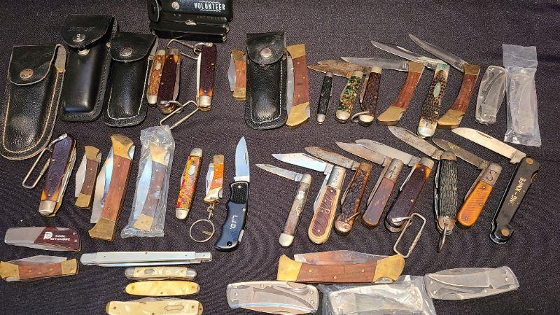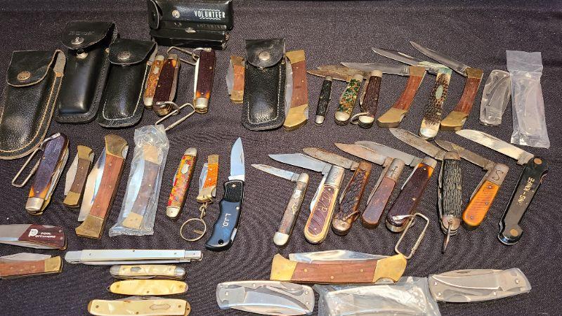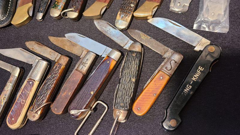 Large lot of old and new pocket knives. CLS Please see all pictures for content of the lot, condition of the lot, and measurements if taken. Pictures are the best representation of the items listed and items are untested unless indicated in description. Thank you for looking and have fun bidding!