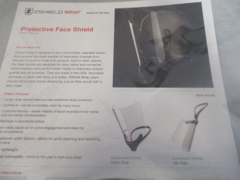 This protective face shield has never been used. It was purchased for someone who was struggling with using a face mask, but the recipient chose to stick with a traditional face mask. This is the kind that rests on your neck/shoulders with the open end by your forehead.