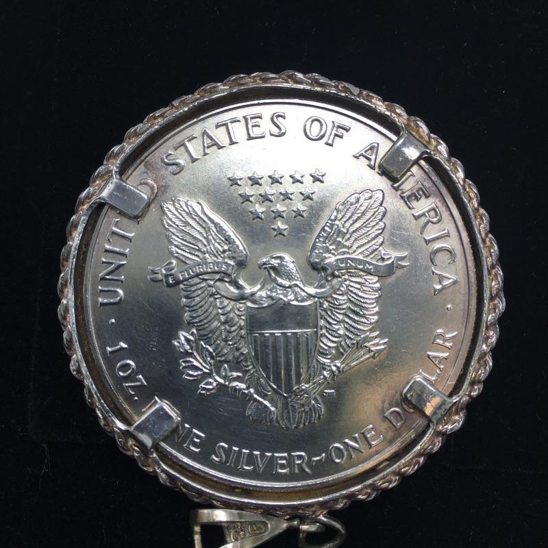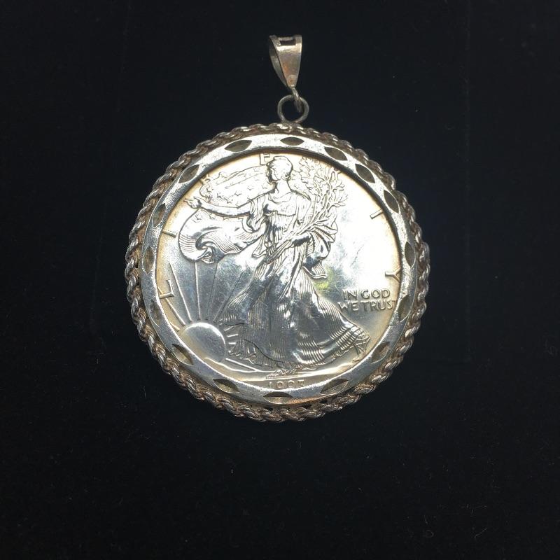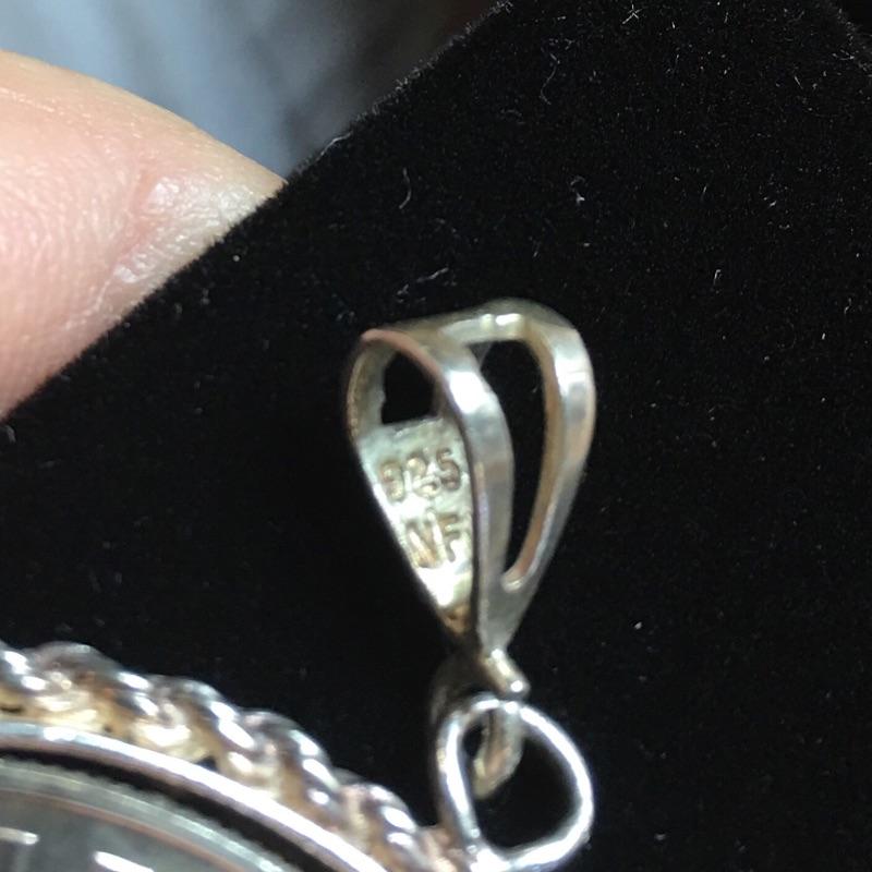 Silver coin in a pendant holder is marked 925. Lot also includes a really cool cut out gold liberty coin. It is possibly gold but is unmarked, See pictures