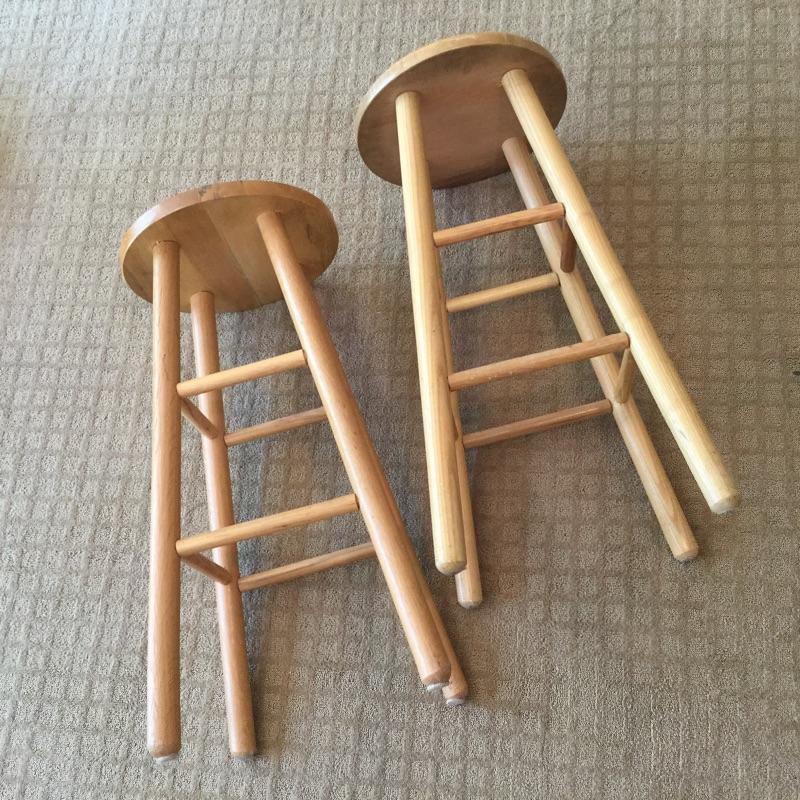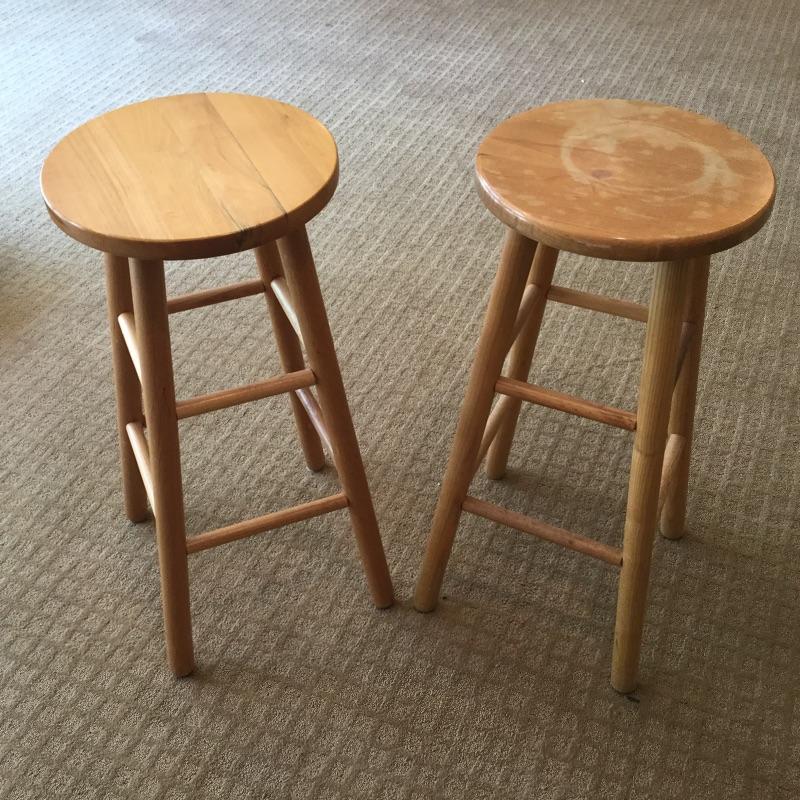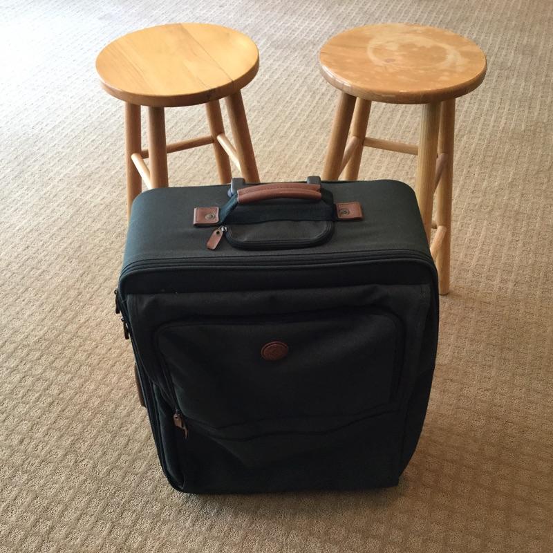 Two 29” tall wooden Bar stools and a Samsonite Lite2 Suitcase. Suitcase measures approximately 26.5” x 19” x 8” with room to grow when filled. Local pickup.