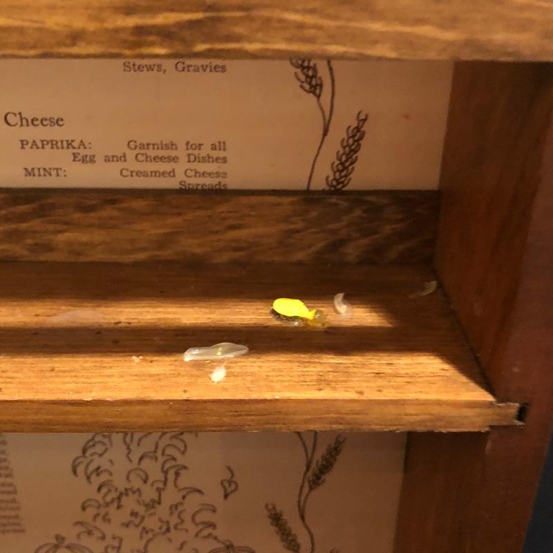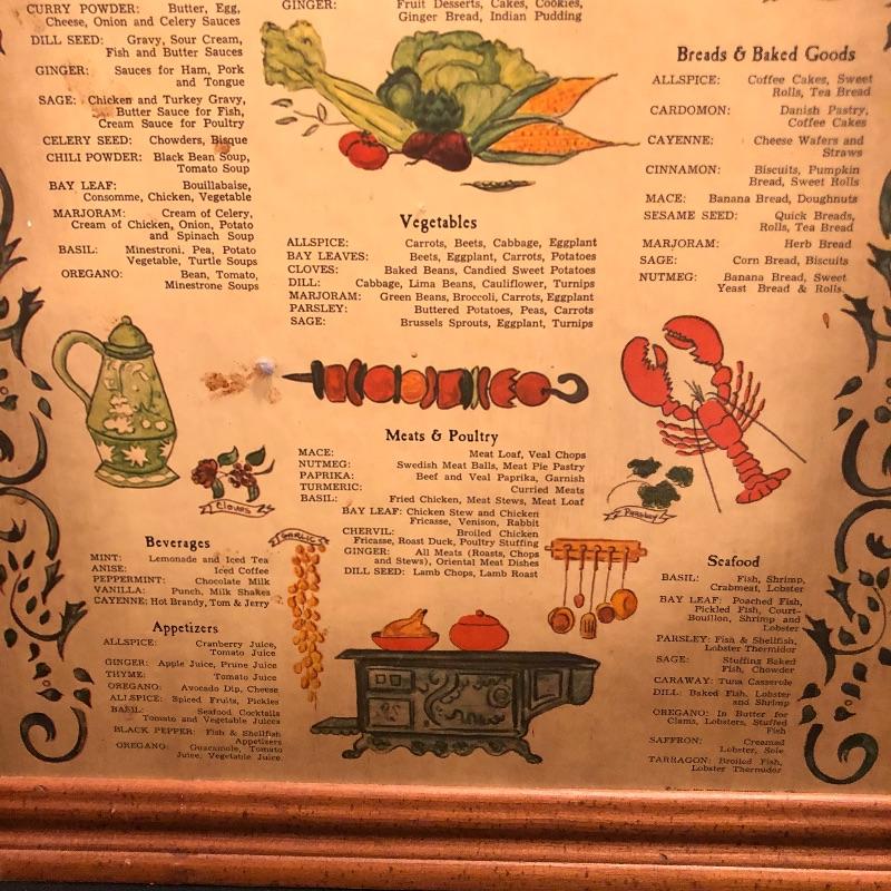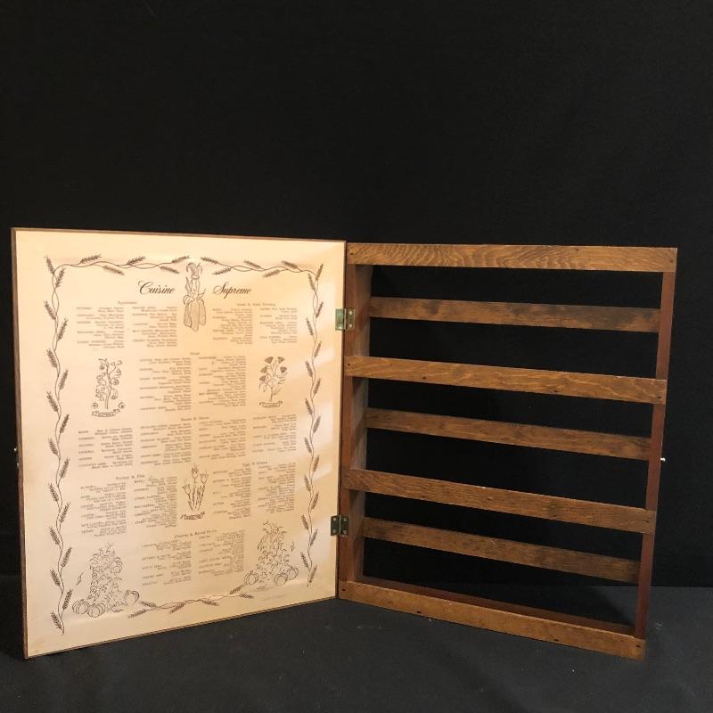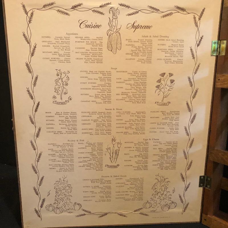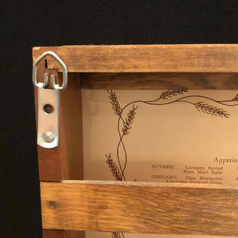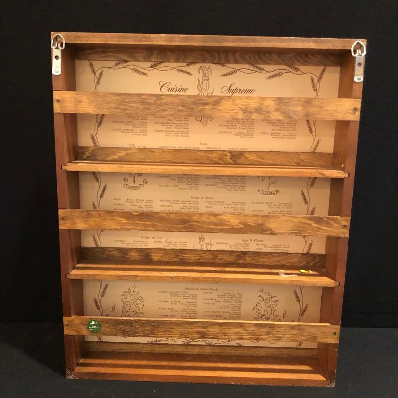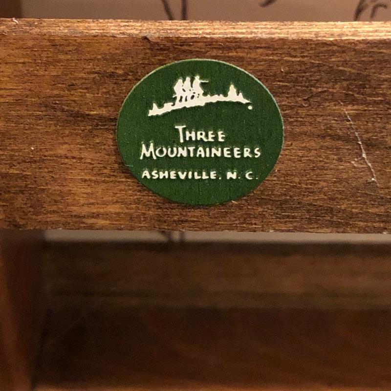 This Three Mountaineers spice rack was locally made right here in Asheville and has withstood the test of time very well as it’s in excellent vintage condition. There is some glue or something similar stuck on one shelf that should easily come off, see last image.