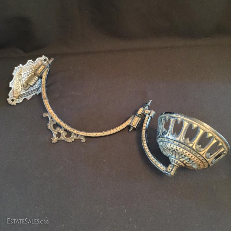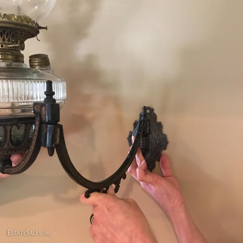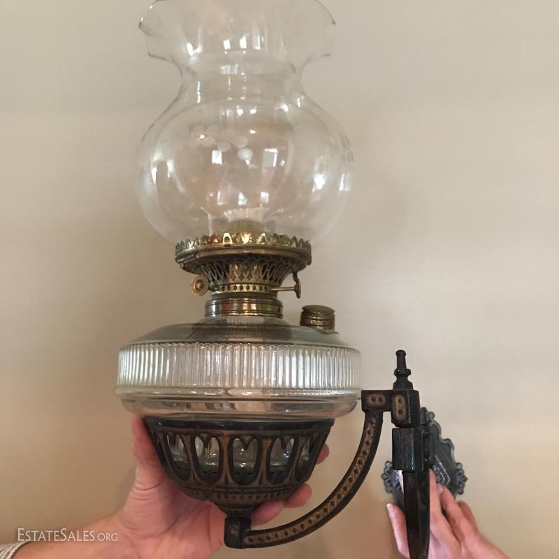 Lot 124 - Two Wall Mounted Lamp or Candle Holder with Victorian Glass Oil Lamp